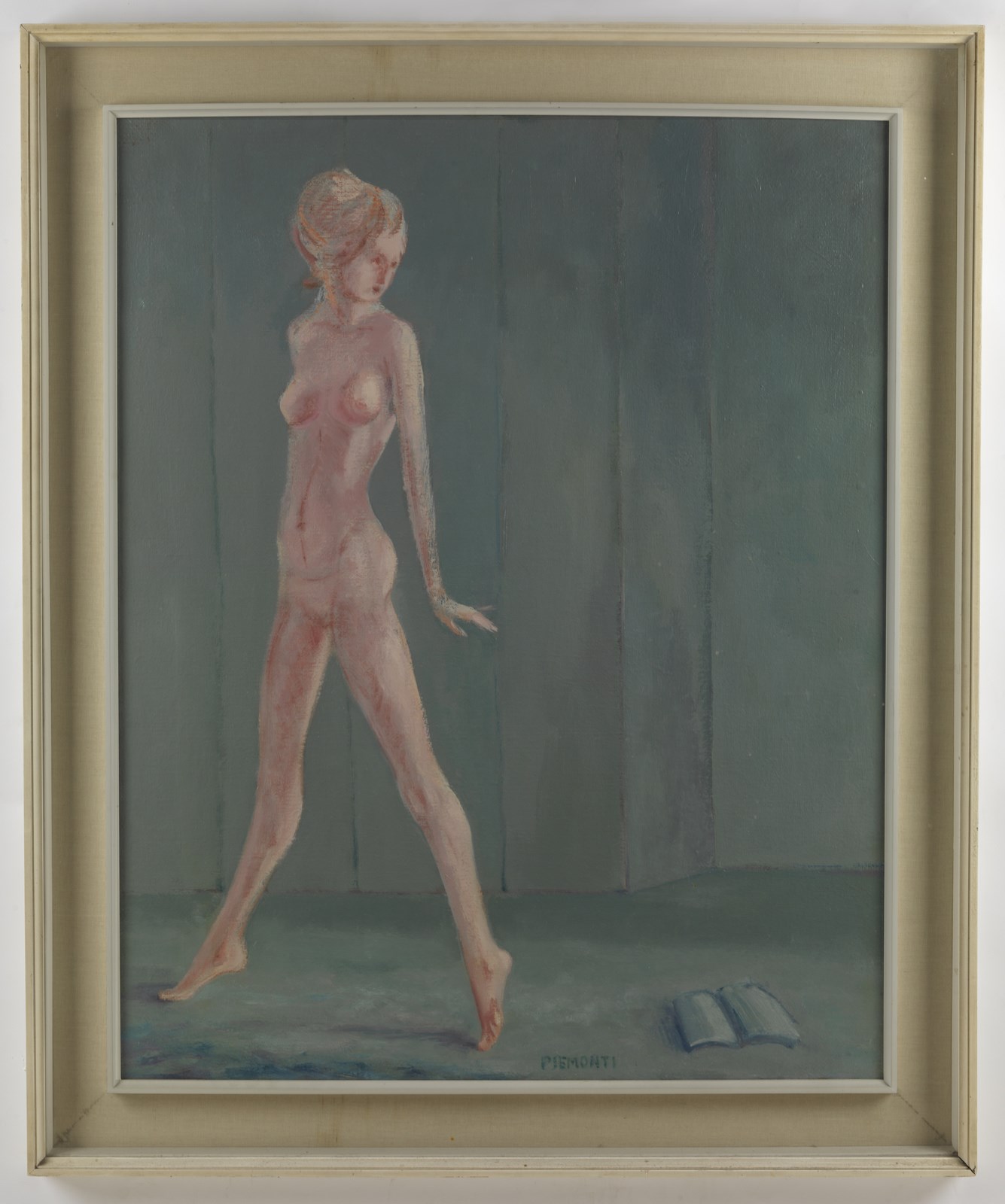 PIEMONTI LORENZO (n. 1935) L'intellettuale. Olio su tela . Cm 98,00 x 118,00. Firma in basso al centro e al retro. . Cornice presente