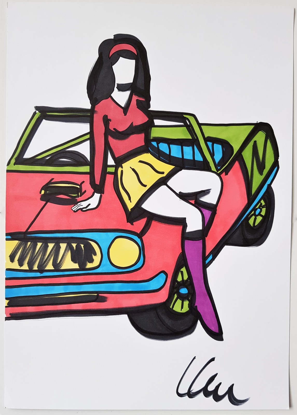 LODOLA MARCO (n. 1955) Senza titolo. Pennarelli su cartoncino. Cm 30,00 x 42,00. Firma in basso a destra. Autentica dell'artista su fotografia.