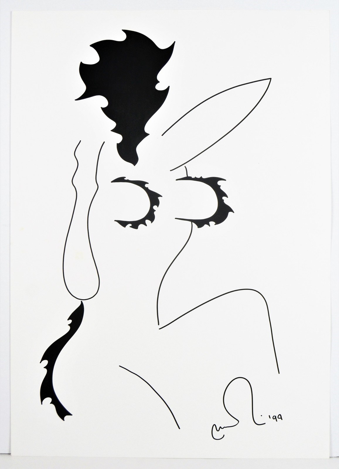 AUTORE NON IDENTIFICATO Senza titolo. 1999. China su cartonciono. Cm 50,00 x 70,00. Firma e anno in basso a destra.