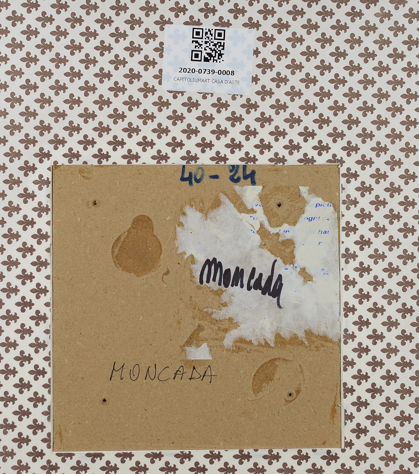 MONCADA IGNAZIO (n. 1932) Senza titolo. Olio su tavola. Cm 19,00 x 19,00. Firma al retro. Cornice presente