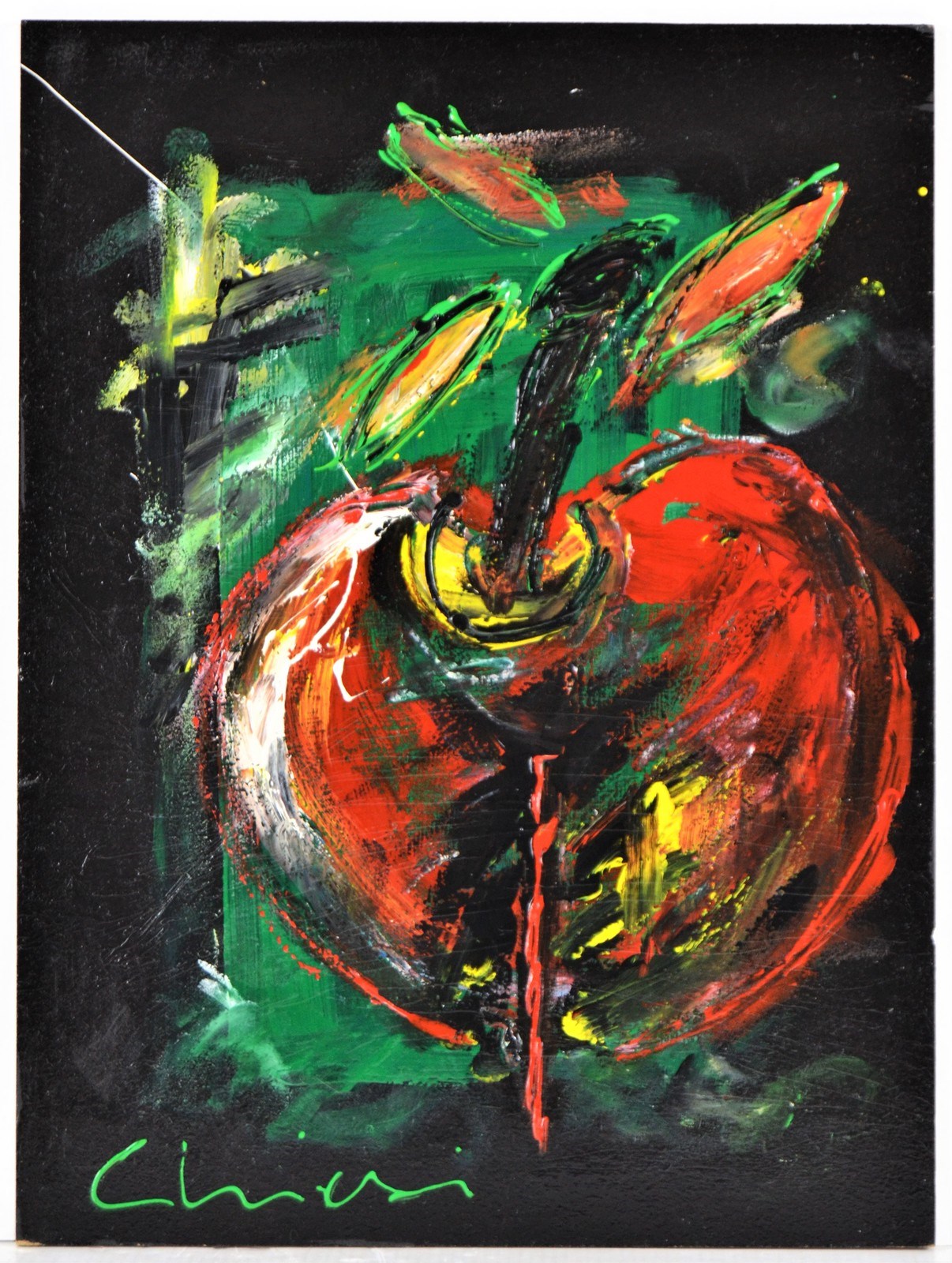 CHIESI GIORGIO (n. 1941) Senza titolo. Smalti su tavola. Cm 30,00 x 20,00. Firma in basso al centro. Autentica dell'artista su fotografia riportante il relativo numero d'inventario. Pubblicazione: Catalogo generale delle opere di Giorgio Chiesi a cura di Francesco Gallo, Volume III, Edizioni l'Indiano ( catalogo non incluso).