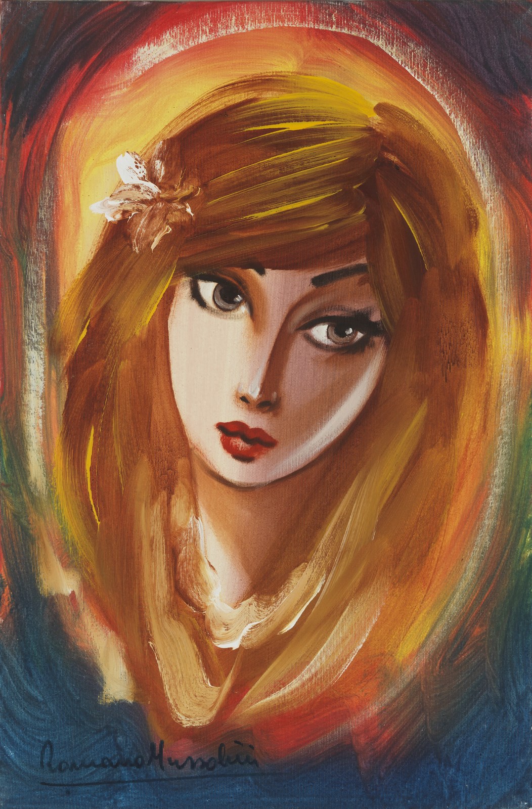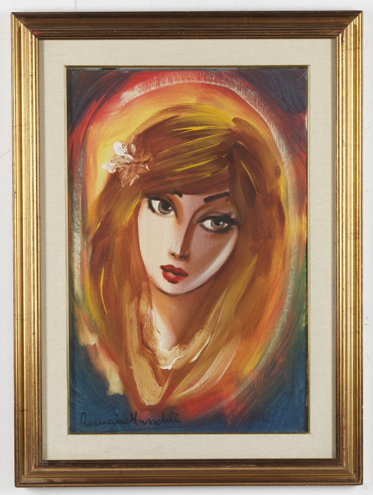 MUSSOLINI ROMANO (1927 - 2008) Ritratto. Olio su tela . Cm 40,00 x 60,00. Firma in basso a sinistra. Anni '70. Cornice presente