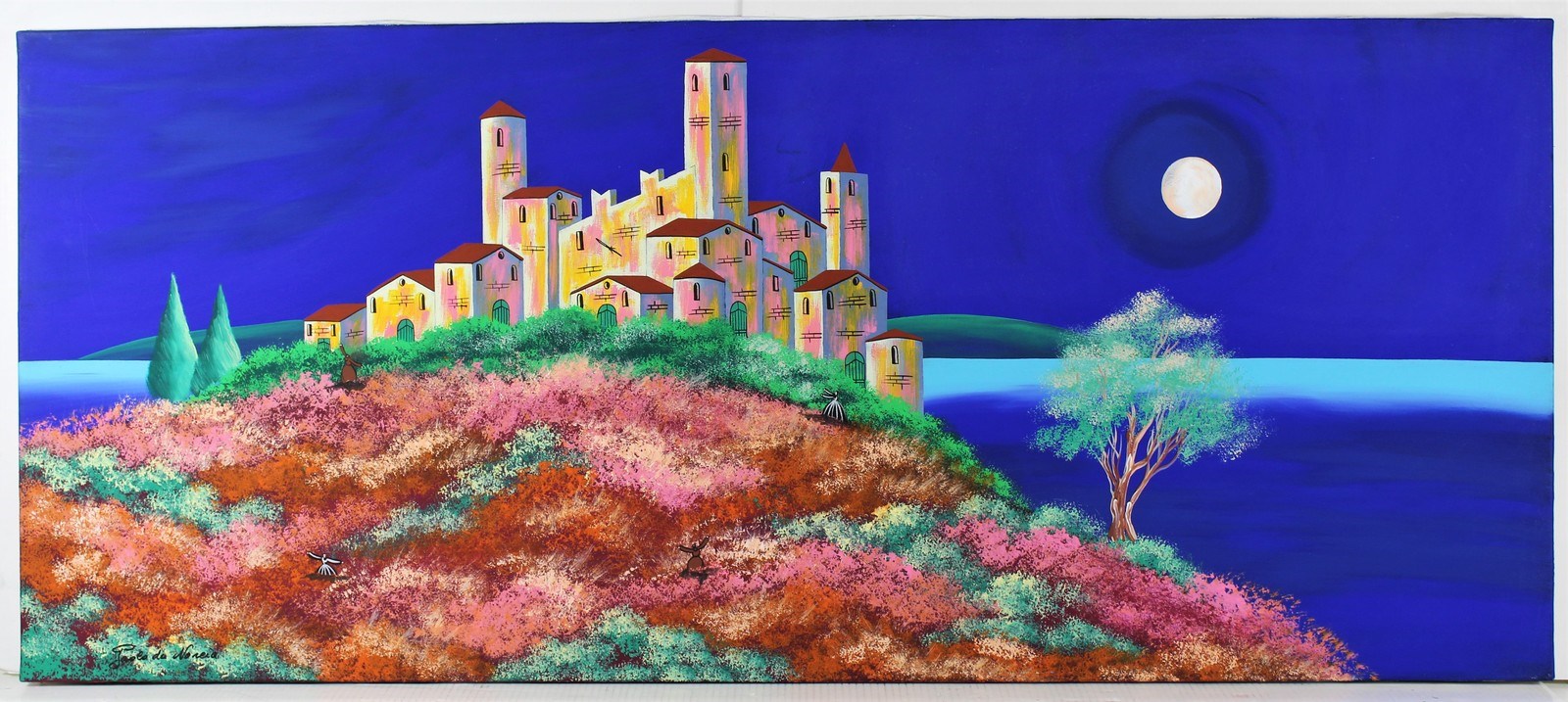 DA NORCIA PAOLO (n. 1953) Campo di fiori notturno. 2002. Olio su tela . Cm 140,00 x 60,00. Firma in basso a sinistra.