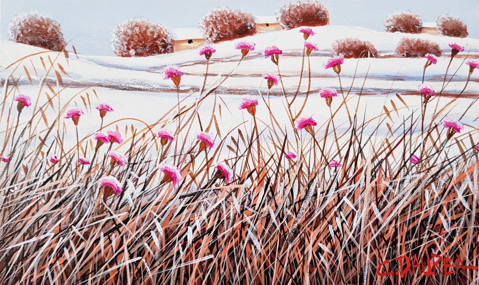 DAUREA GIOVANNI (n. 1955) Inverno. 2018. Olio su tavola. Cm 25,00 x 15,00. Firma in basso a destra. Al retro titolo e firma. Autentica dell'artista su fotografia.