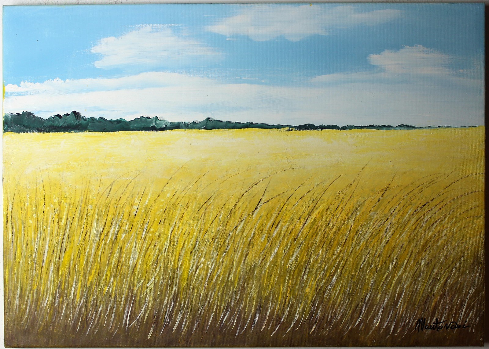 MANTOVANI COSTANZA Campo di grano. 2018. Olio su tela . Cm 70,00 x 50,00. Firma in basso a destra.
