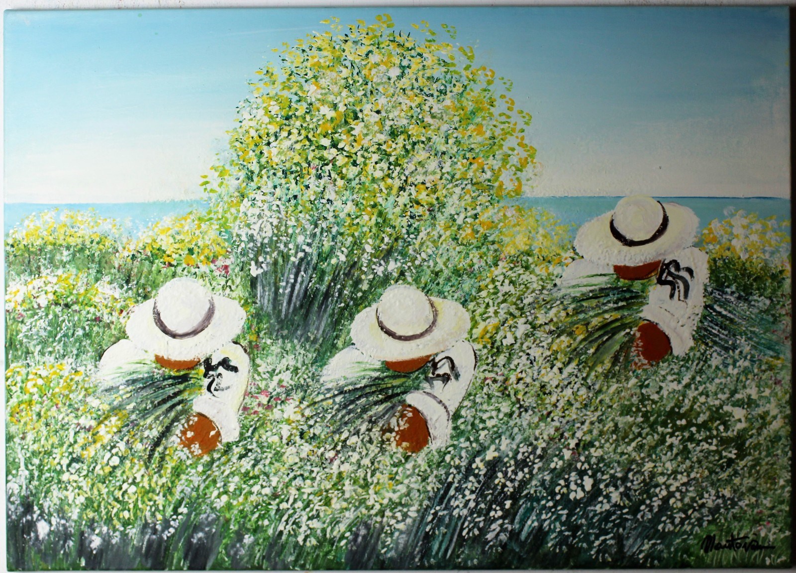 MANTOVANI COSTANZA Le mondine. 2018. Olio su tela . Cm 70,00 x 50,00. Firma in basso a destra.