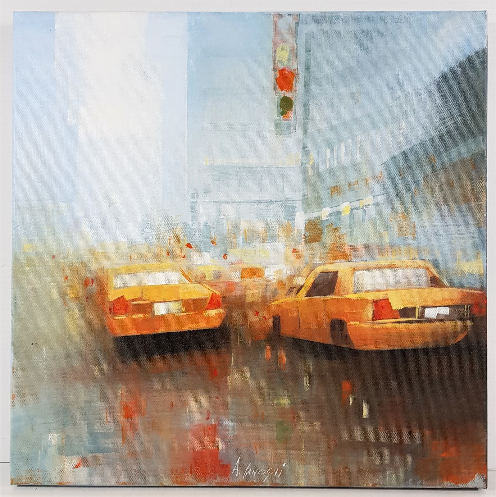 CANCOGNI AGOSTINO (n. 1950) Città. Olio su tela . Cm 50,00 x 50,00. Firma in basso al centro. Al retro firma e titolo. Autentica dell'artista su fotografia.