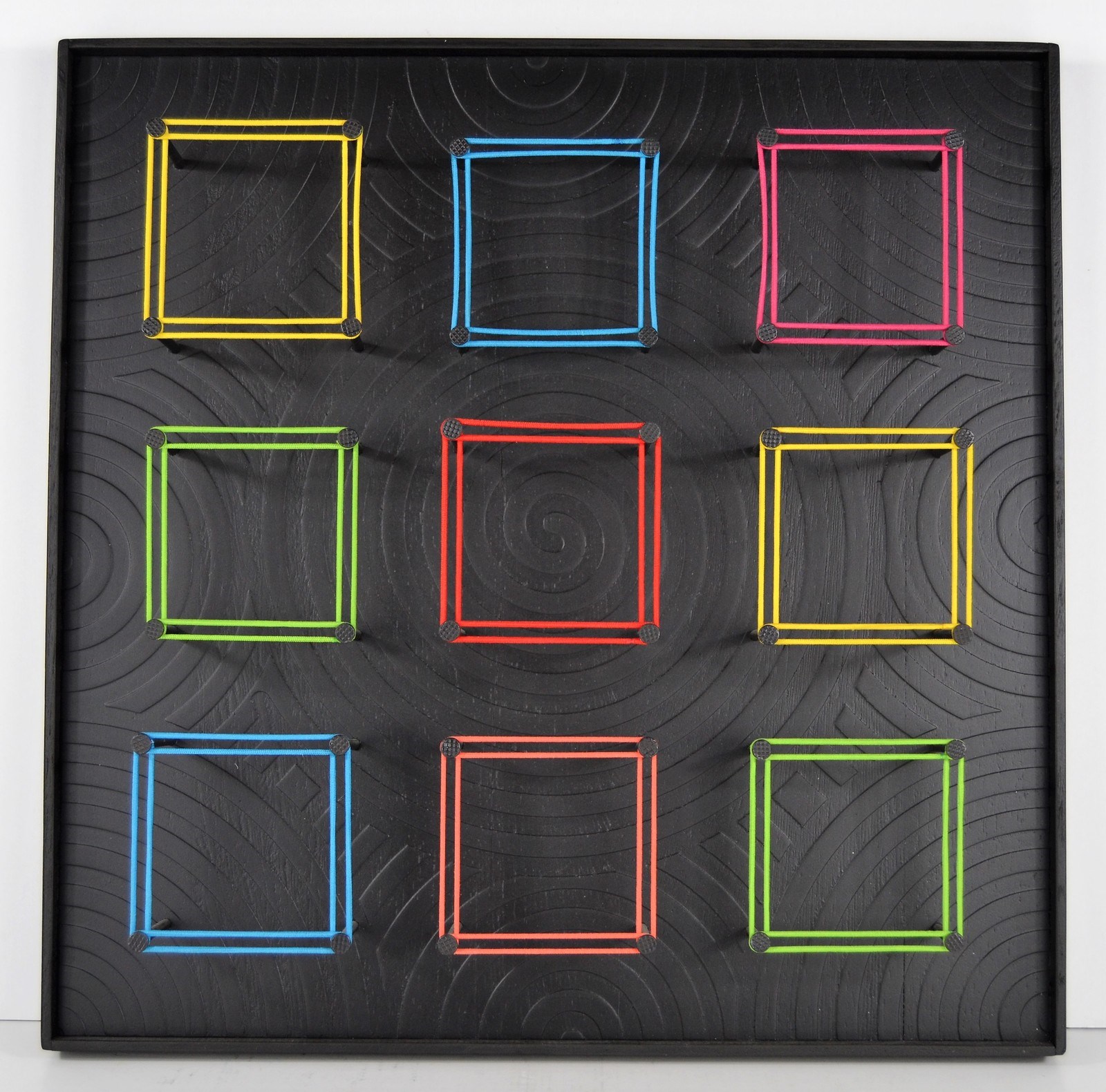 BARDI MIRCO (n. 1970) Senza titolo. Tecnica mista e applicazioni su tavola. Cm 50,00 x 50,00 x 13,00. Firma sul lato destro.