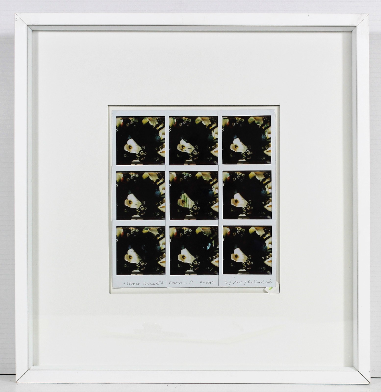 GALIMBERTI MAURIZIO (n. 1956) Studio calle & punto.. 2017. Mosaico di polaroid. Cm 20,50 x 22,50. Firma, titolo e anno in basso al centro. Opera archiviata presso l'Archivio Nordest, Seregno come da documentazione fotografica allegata all'opera riportante il relativo numero d'inventario e la firma dell'artista. Pubblicazione: Maurizio Galimberti - Flowers a cura dell'Archivio NordEst, Seregno, Edizioni Centro diffusione Arte. Cornice presente