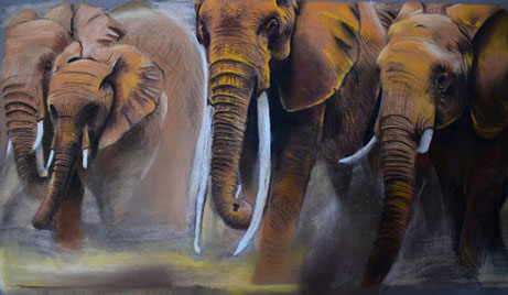 Antonella Loschi - Italia - Elefanti - 2019 - Iperrealismo pittura e pastello su Pastelmat - 24x49 cm