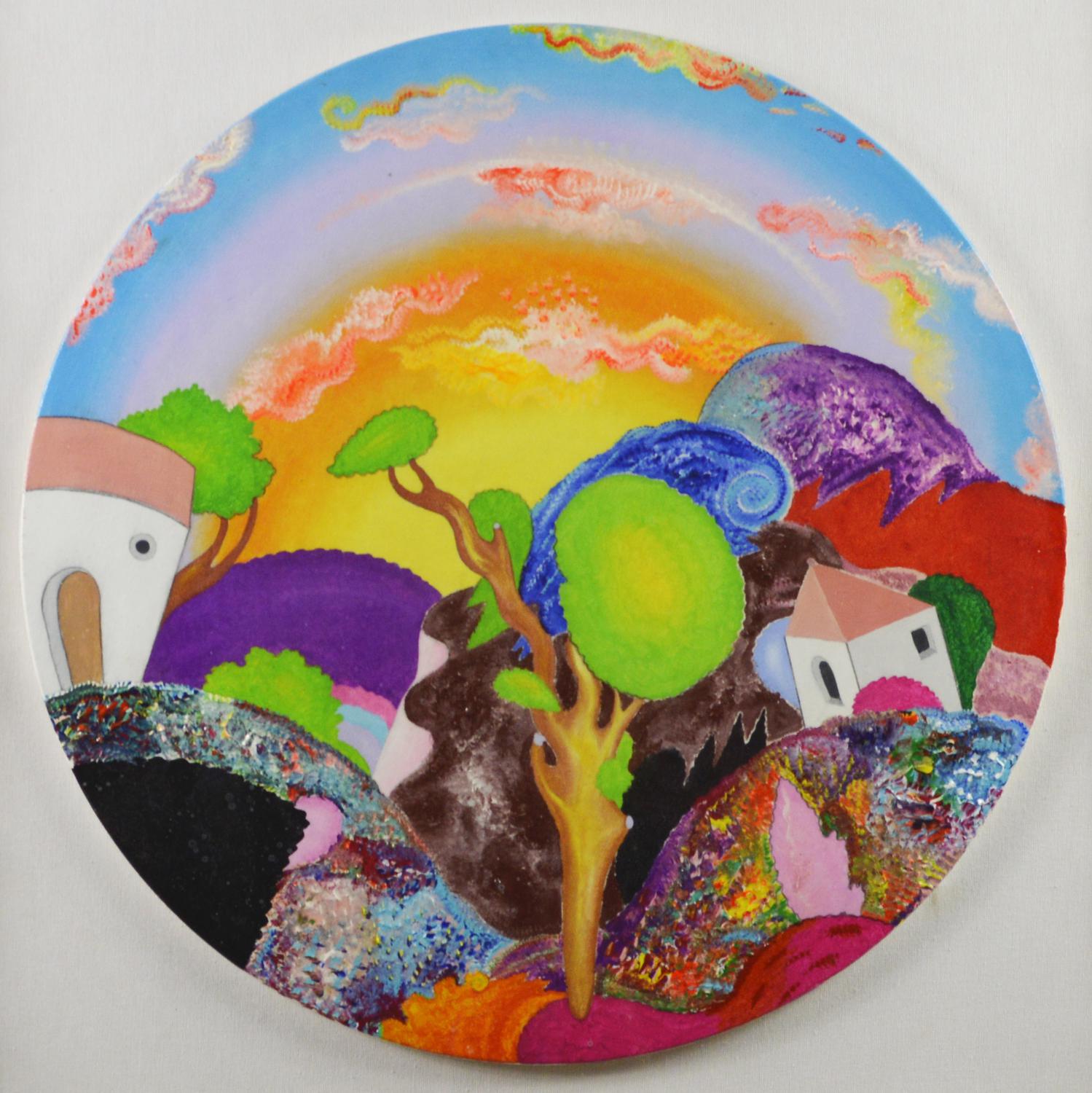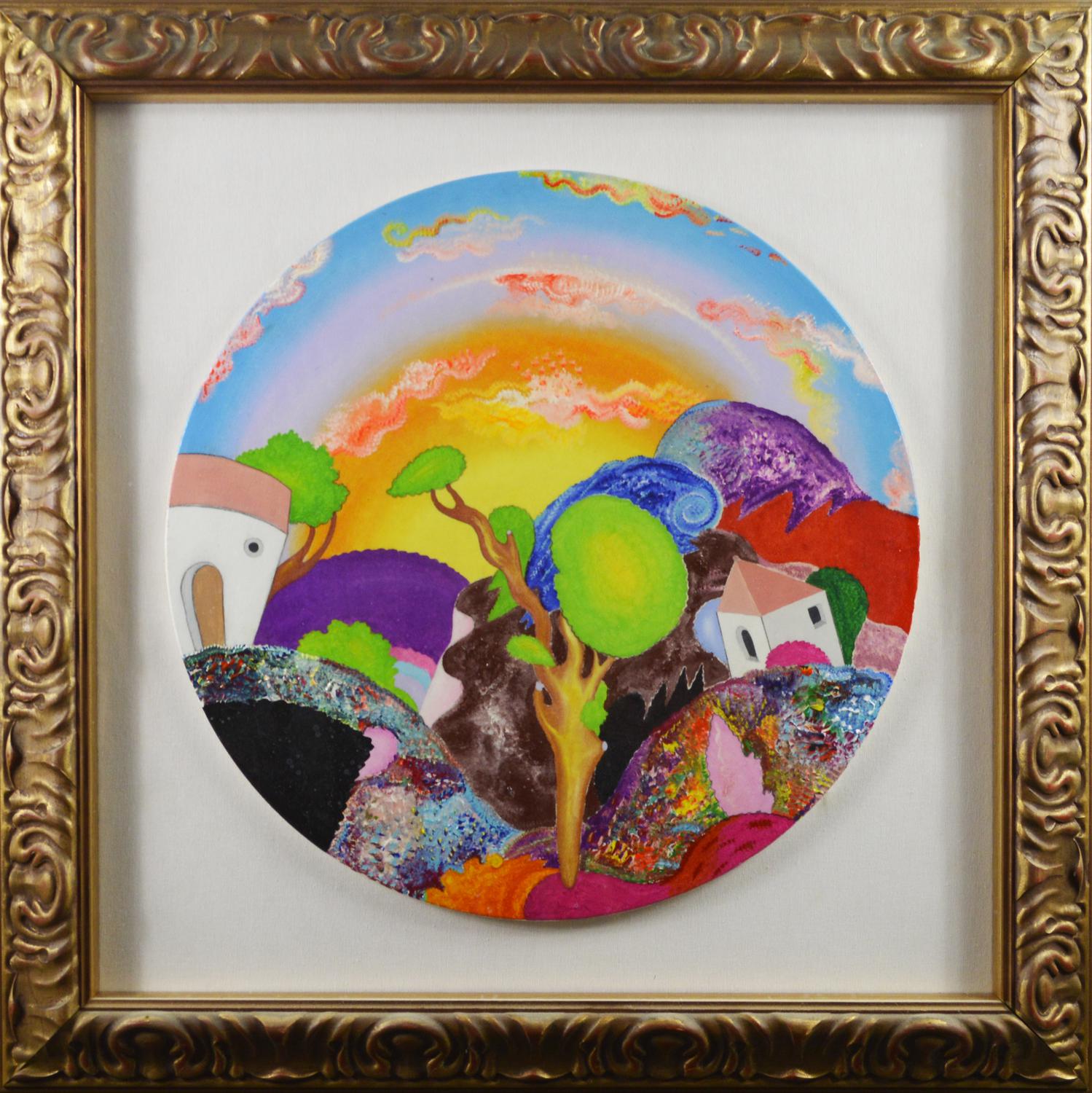 Luca Alinari VEDUTA olio su tela, diametro cm 49,5 firma eseguito nel 1995...