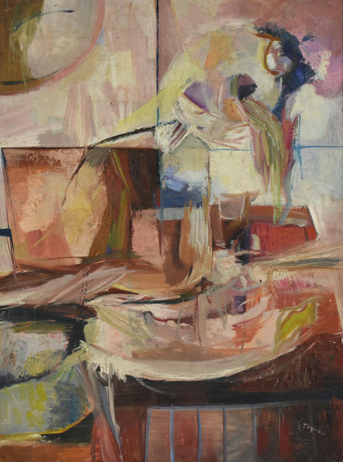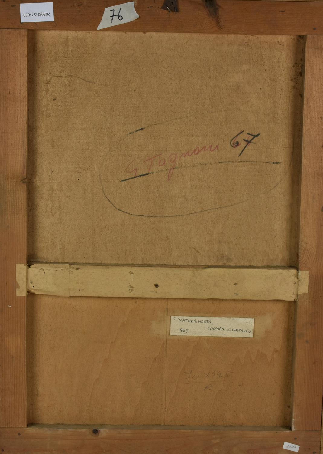 Giancarlo Tognoni NATURA MORTA olio su tavola, cm 76x54,5 firma sul retro:...