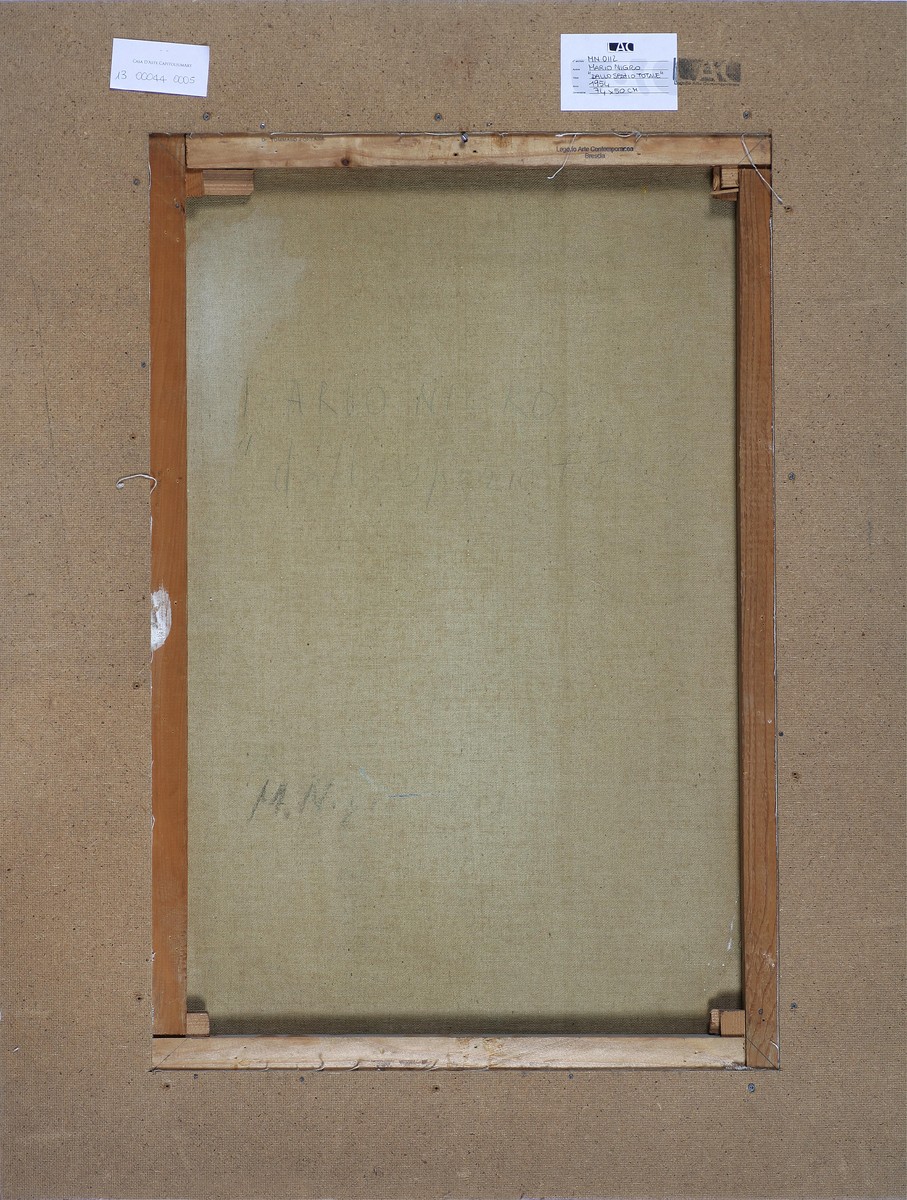 NIGRO MARIO (1917 - 1992) Dallo spazio totale. 1955. Tempera verniciata su tela. Cm 50,00 x 73,00. Opera archiviata presso l''Archivio artistico Mario Nigro, Milano, come da documentazione fotografica allegata riportante il relativo numero d'inventario.Opera pubblicata sul catalogo ragionato dell'artista a cura di Germano Celant, edizioni Skira, pag. 367, tavola n.168. Cornice presente