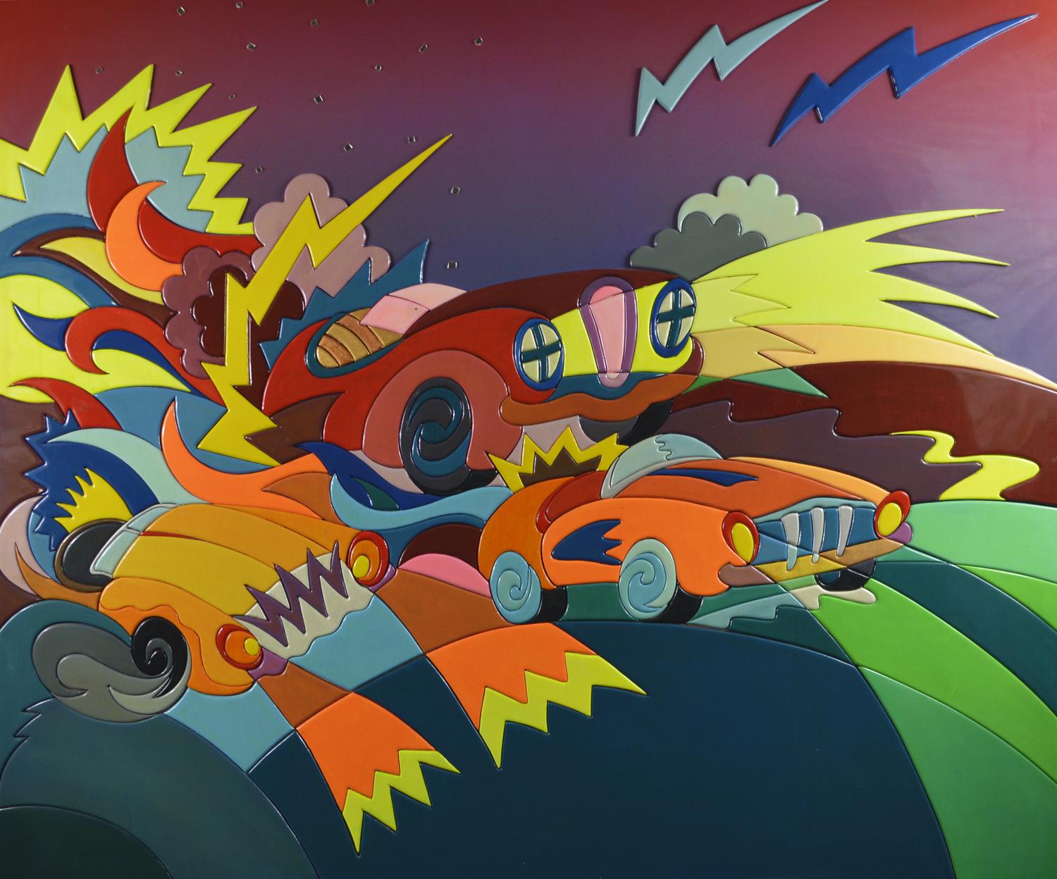 Massimo Sansavini FAST polimaterico su tavola, cm 100x120 sul retro: firma,...