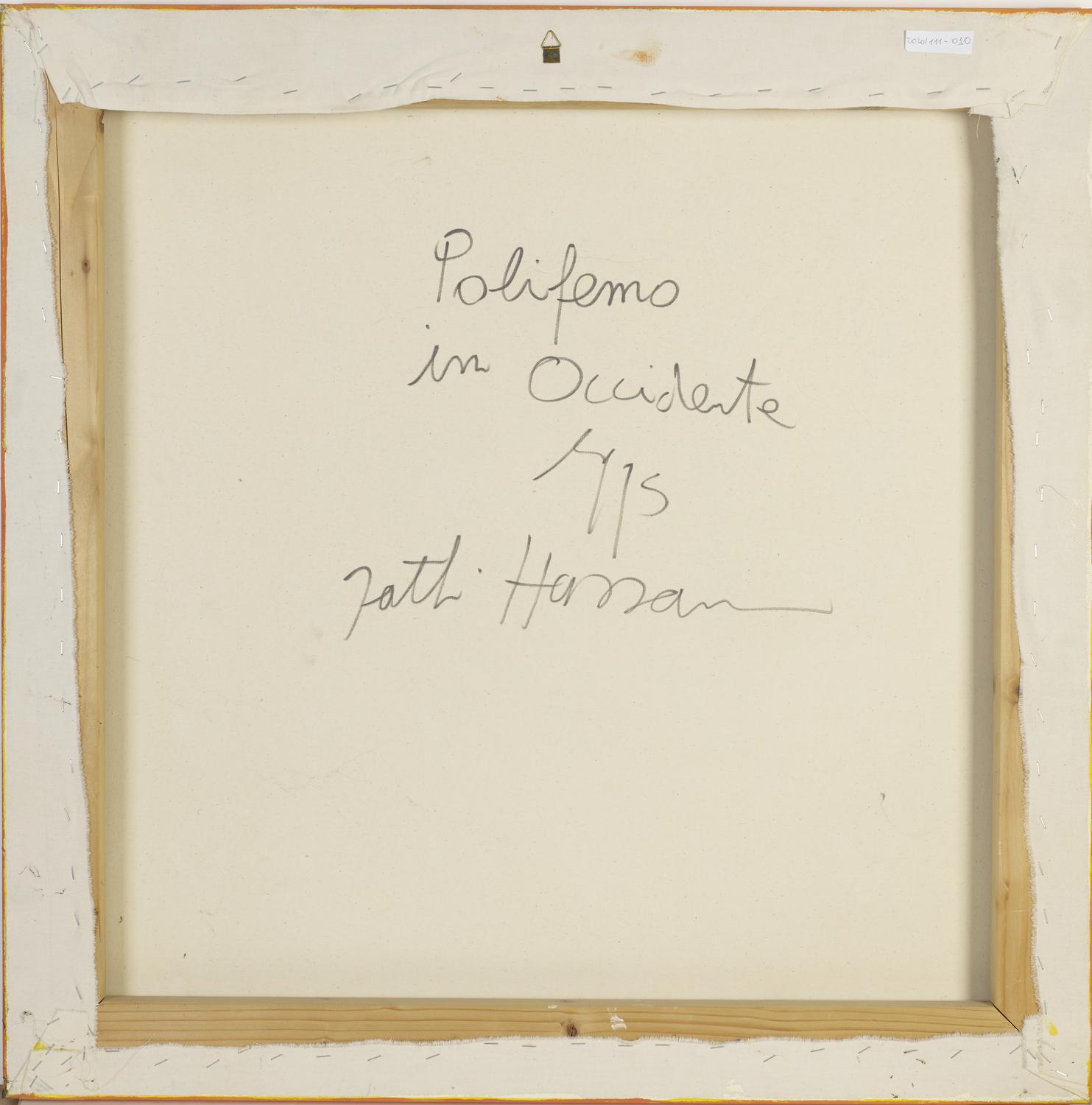 Hassan Fathi POLIFEMO IN OCCIDENTE acrilico su tela, cm 80x80 sul retro:...