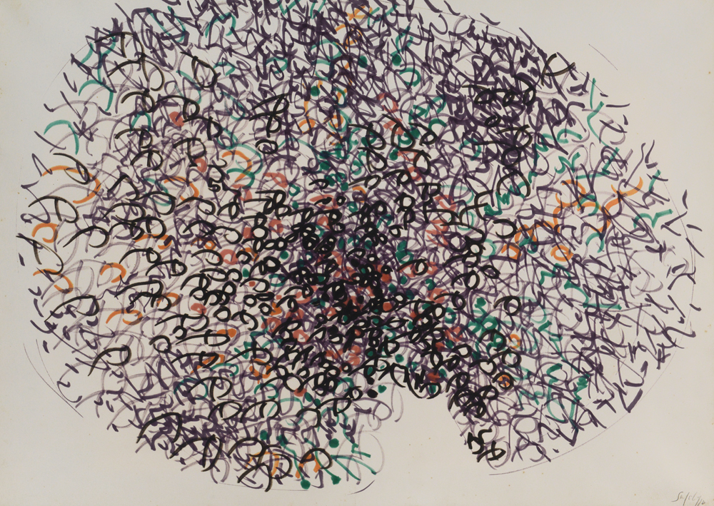 ANTONIO SANFILIPPO Partanna (Tp) 08/12/1923 - Partanna (Tp) 31/01/1980  Senza titolo, (1962) tecnica mista su carta intelata cm. 49,5x70, firma in basso a destra, timbri della Galleria Valente Arte Contemporanea e della figlia Antonella al retro, dichiarazione d'autenticità della figlia Antonella su foto.