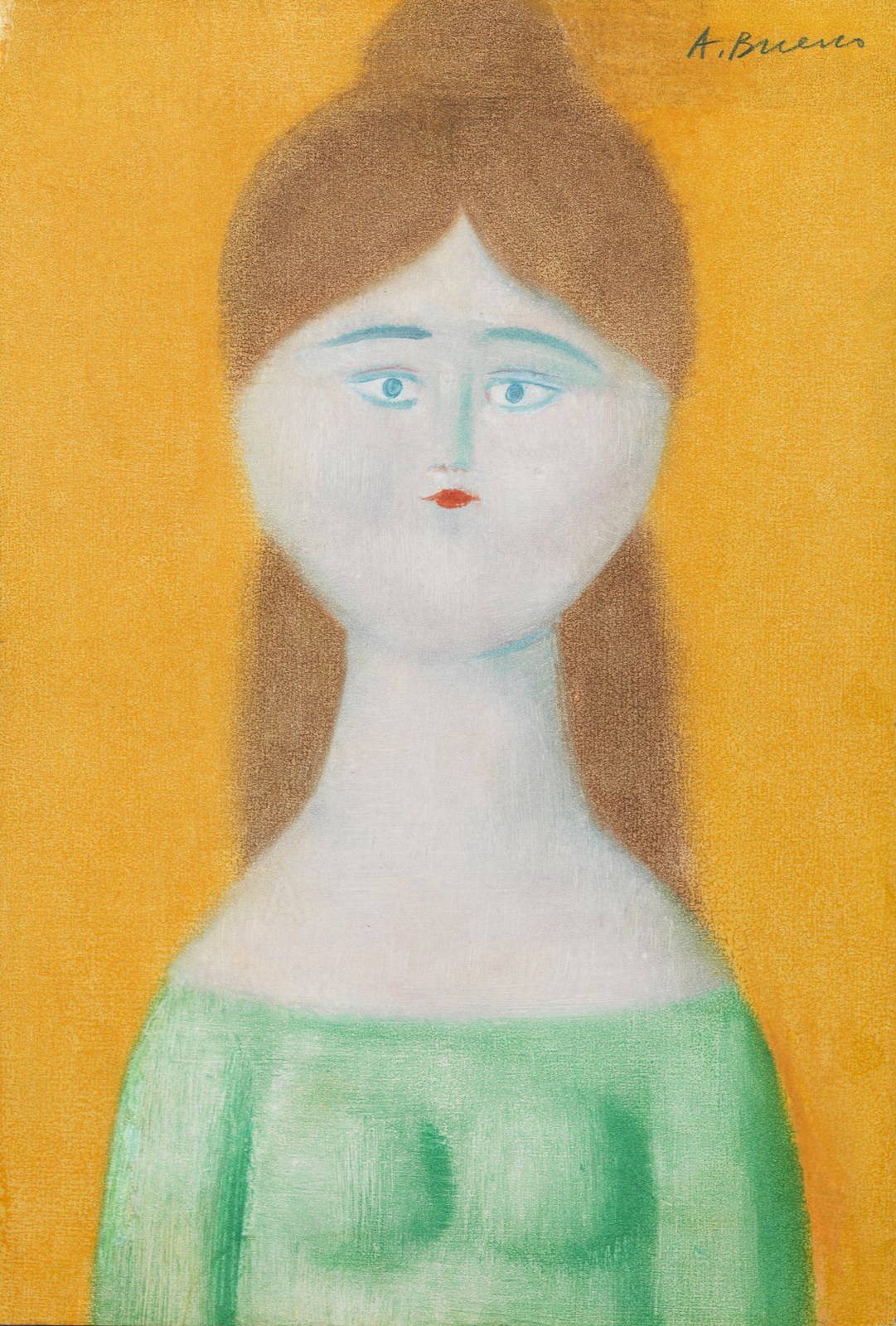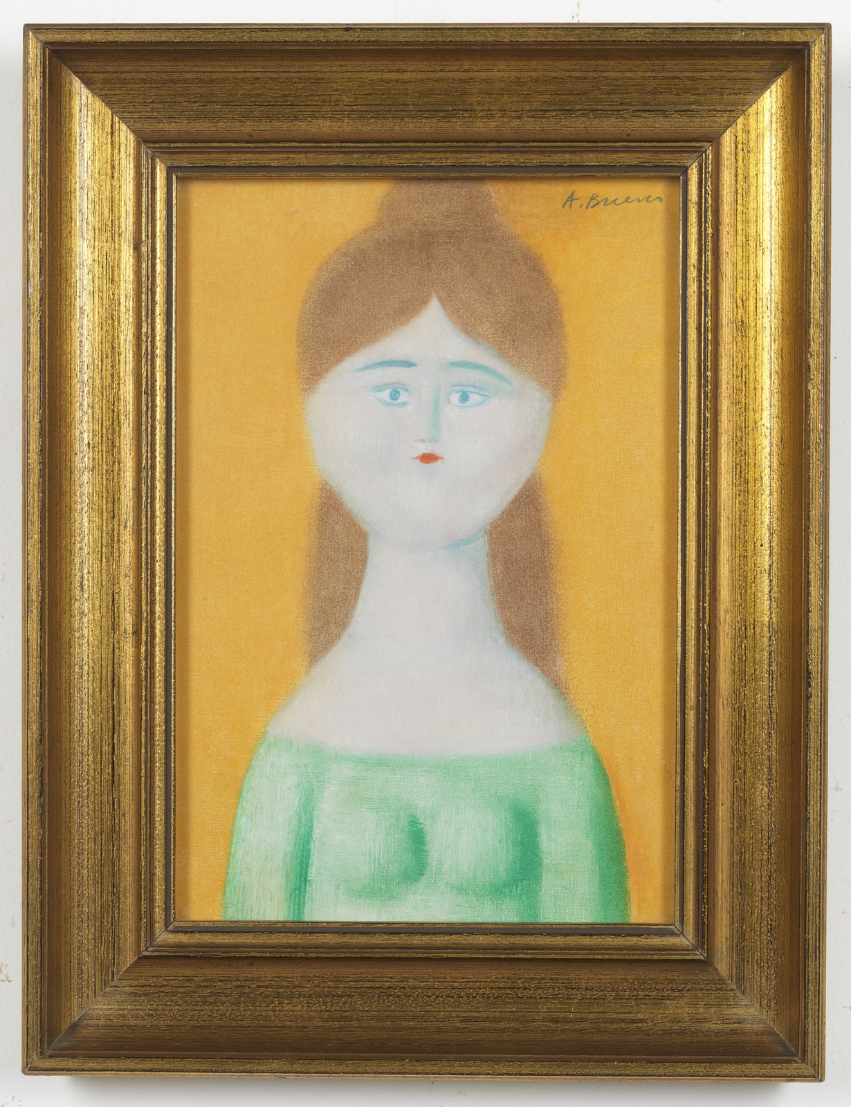 BUENO ANTONIO (1918 - 1985) Fanciulla Bionda. 1980. Tecnica mista su carta su tavola. Cm 20,00 x 30,00. Firma in alto a destra. Opera archiviata presso l'Archivio Antonio Bueno - Giovanbattista Bianco come da documentazione fotografica allegata all'opera riportante il relativo numero d'inventario e la firma dell'artista. Cornice presente