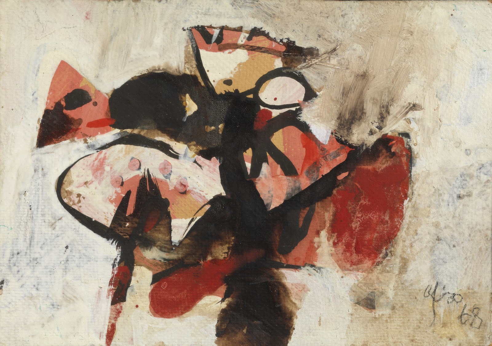 BASALDELLA AFRO (1912 - 1976) Senza titolo. 1968. Tecnica mista su cartone. Cm 28,50 x 20,00. Firma e anno in basso a destra. Opera archiviata presso l'Archivio Afro (1 Febbraio 2012) come da documentazione fotografica allegata all'opera riportante il relativo numero d'inventario. Cornice presente