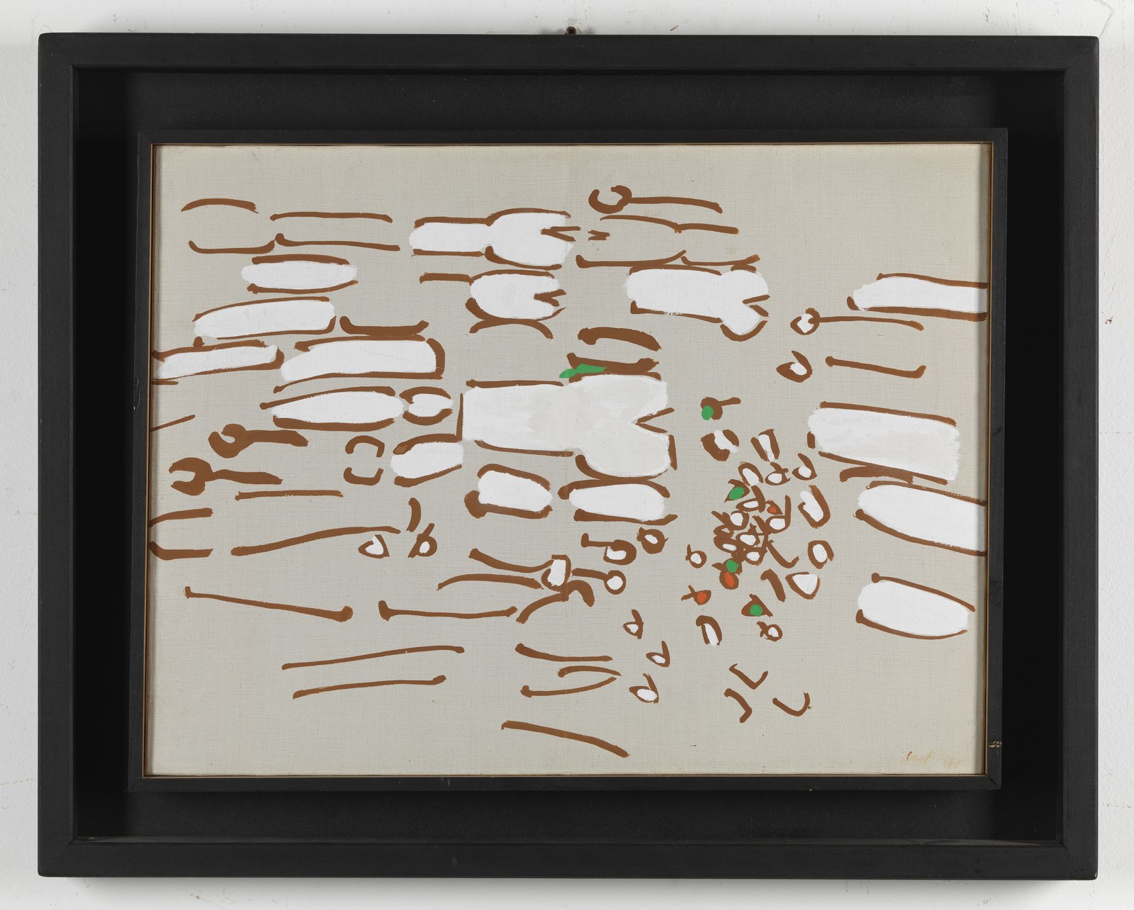 SANFILIPPO ANTONIO (1923 - 1980) Senza titolo. 1967. Tempera su tela. Cm 60,00 x 45,00. Firma e anno in basso a destra e al retro. Autentica su fotografia di Antonella Sanfilippo (copia). Pubblicazione: Antonio Sanfilippo- Catalogo generale dei dipinti dal 1942 al 1977 a cura di Fabrizio D'Amico e Giuseppe Appella, Editore De Luca, 2007, ill.811. Provenienza: Collezione Pucci, Roma; Collezione privata, Roma. Cornice presente