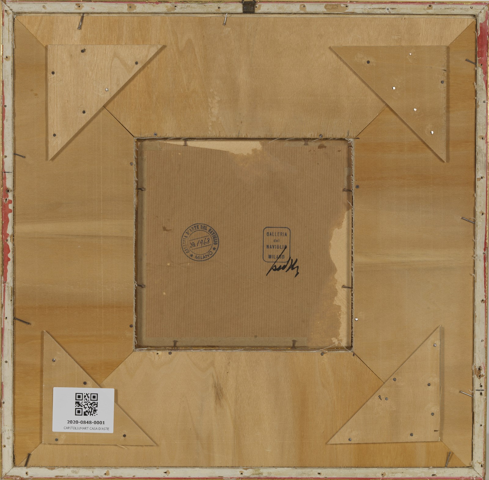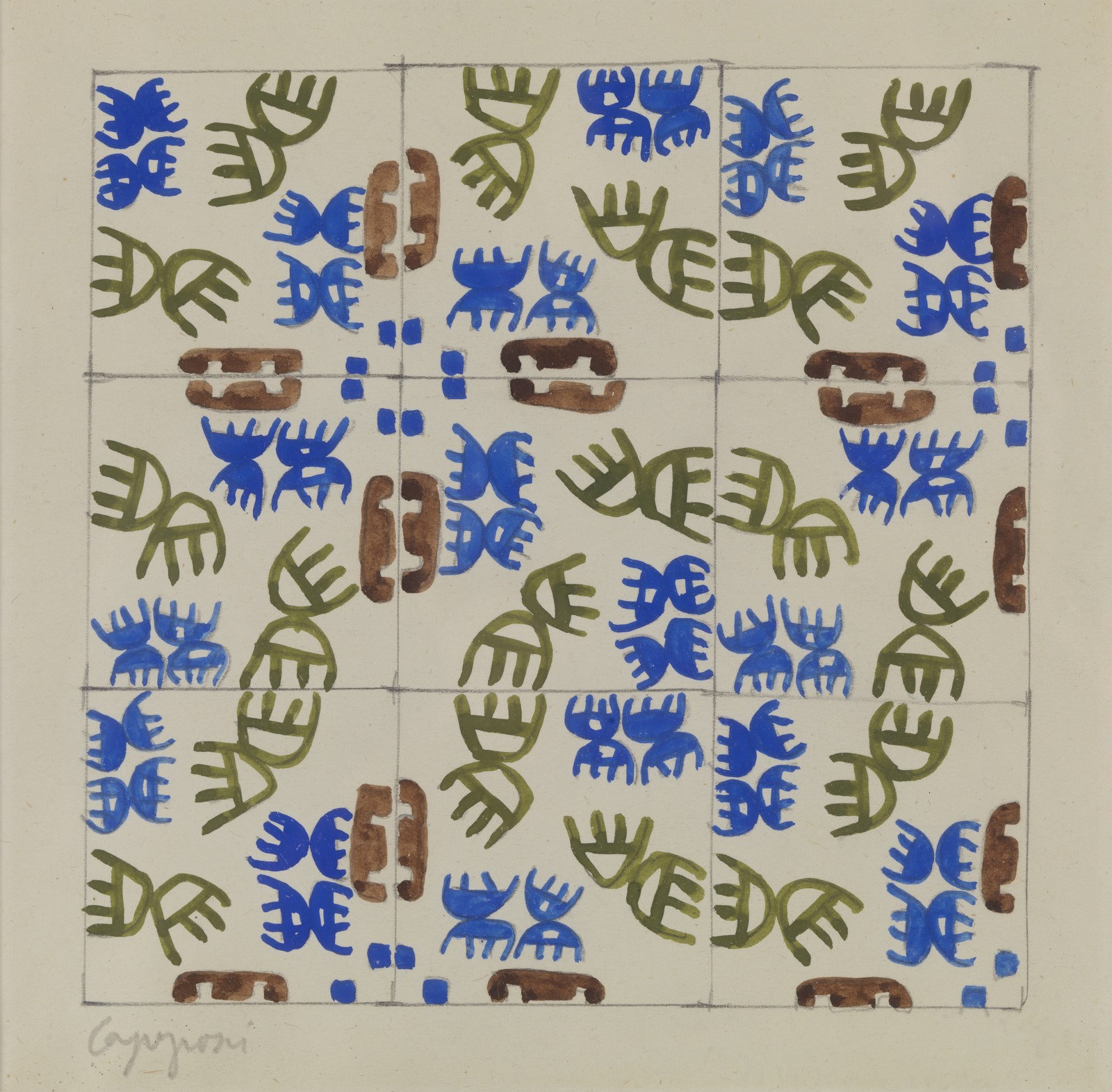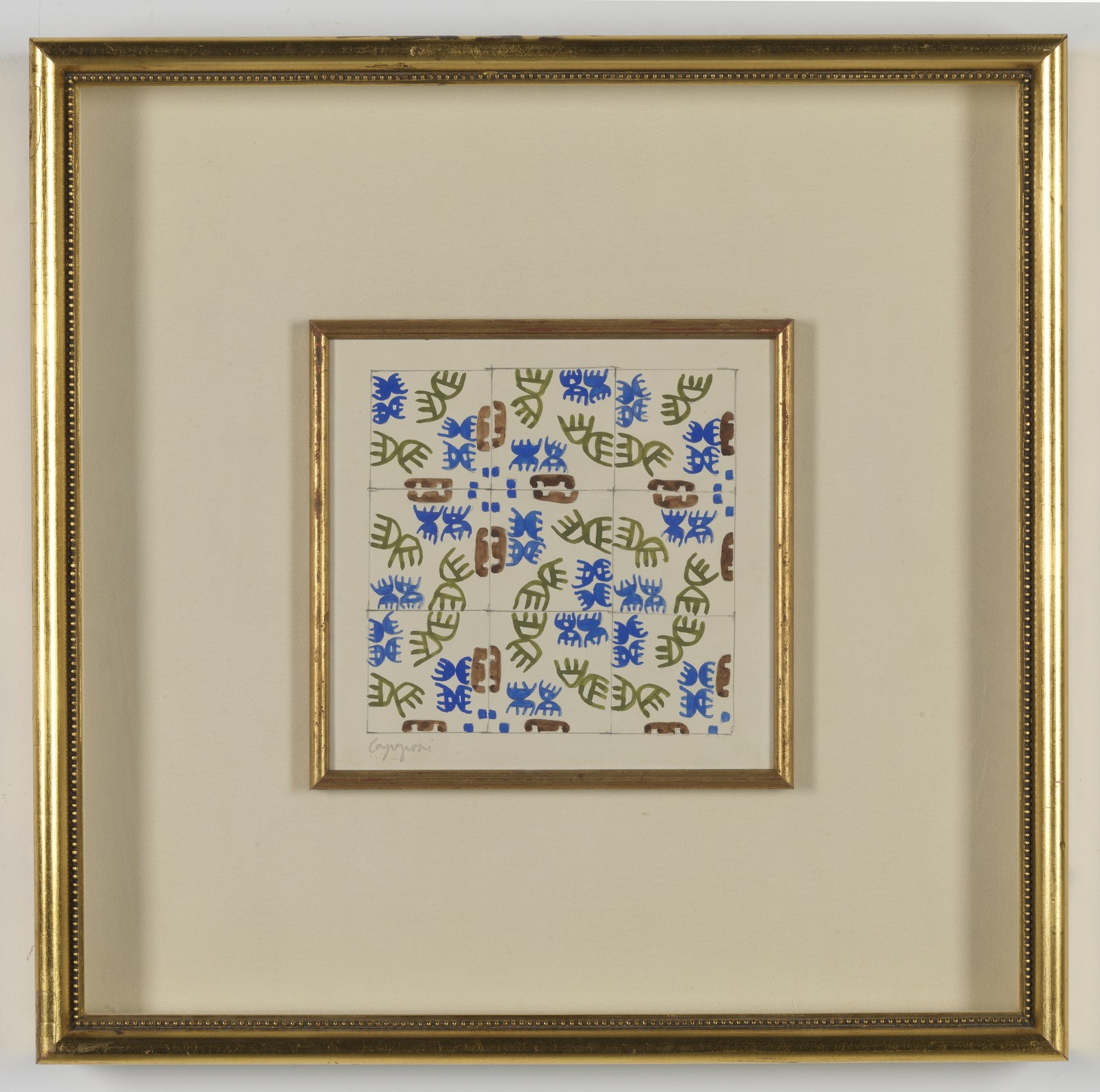 CAPOGROSSI GIUSEPPE (1900 - 1972) Superfici CP/860/A, B,C. 1951. Tecnica mista e grafite su carta. Cm 18,00 x 19,00. Firma in basso a sinistra. Al retro timbro della Galleria del Naviglio, Milano. Certificato di autenticità di Angelica Cardazzo con timbro della Galleria del cavallino, Venezia. Pubblicazione: Capogrossi - Gouaches Collages Disegni, Electa edizioni, pag.275, ill.61. Provenienza: Collezione Capogrossi, Roma; Collezione Sarasin, Ginevra: Galleria del Naviglio, Milano; Galleria del Cavallino, Venezia. Cornice presente