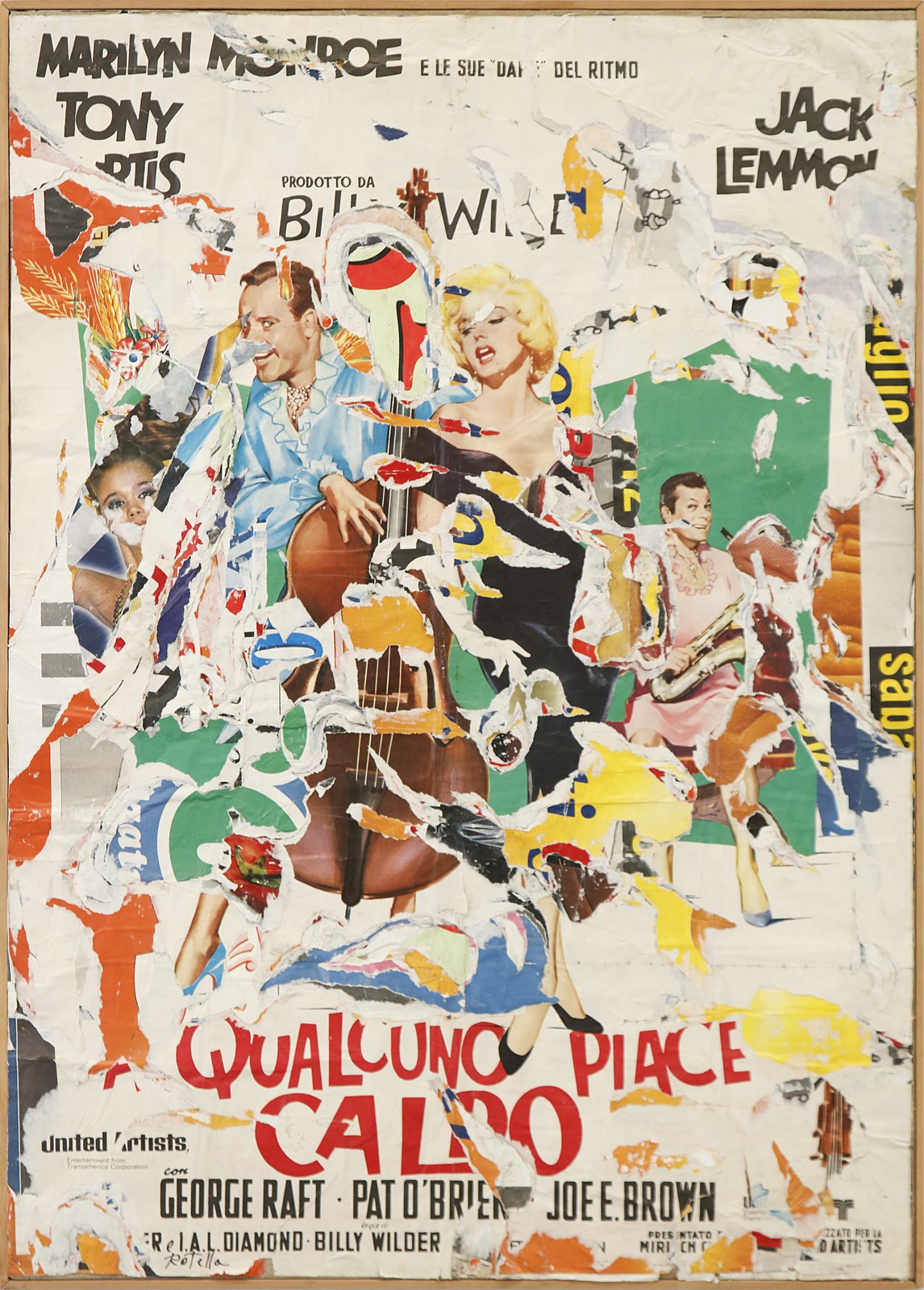 ROTELLA MIMMO (1918 - 2006) Marilyn e le sue dame. Decollage su tela. Cm 100,00 x 140,00. Firma in basso a sinistra. Al retro titolo e anno. Opera archiviata presso la Fondazione Mimmo Rotella, Milano come da documentazione fotografica allegata all'opera riportante il relativo numero d'inventario. 1963-1989.
