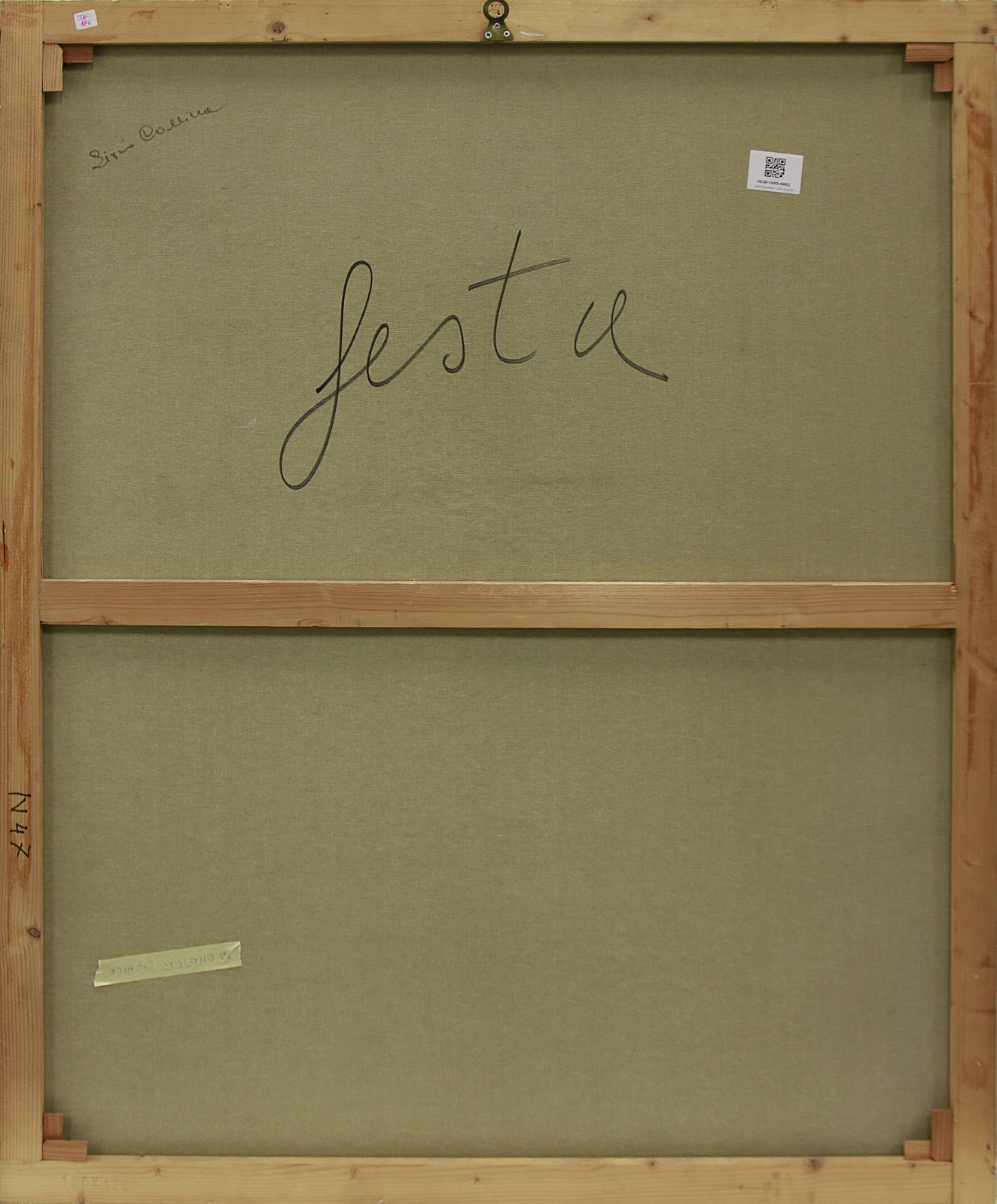 FESTA TANO (1938 - 1988) Coriandoli. Tecnica mista su tela. Cm 100,00 x 120,00. 1984/1985. Firma al retro. Opera archiviata presso l'Archivio Tano Festa - Studio Soligo, Roma come da documentazione fotografica allegata all'opera riportante il relativo numero d'inventario.