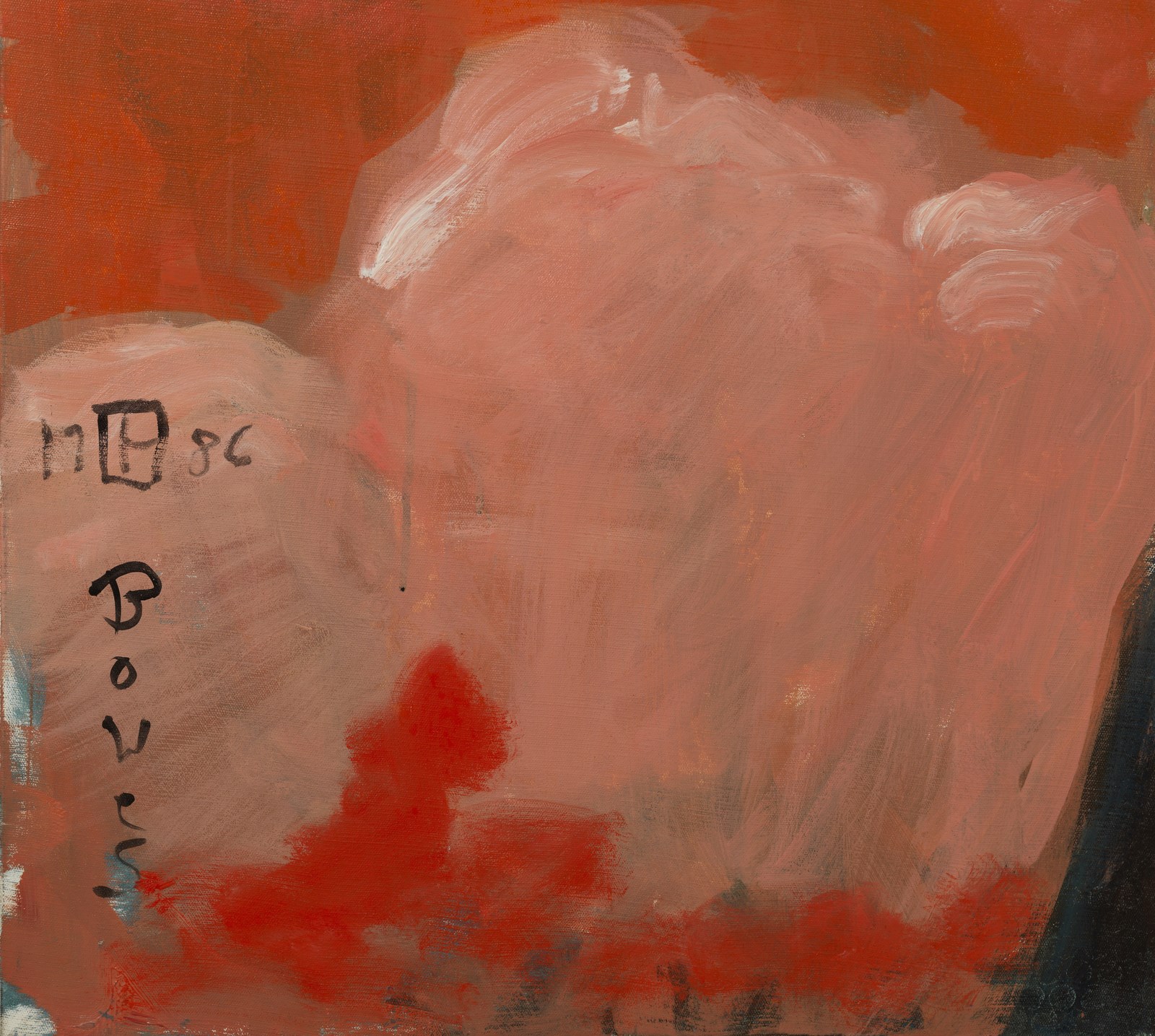 BOWES DAVID (n. 1957) Poet without ears. 1986. Olio su tela . Cm 140,00 x 170,00. Firma e anno in basso a sinistra. Al retro cartiglio descrittivo e timbro Lucio Amelio, Napoli.