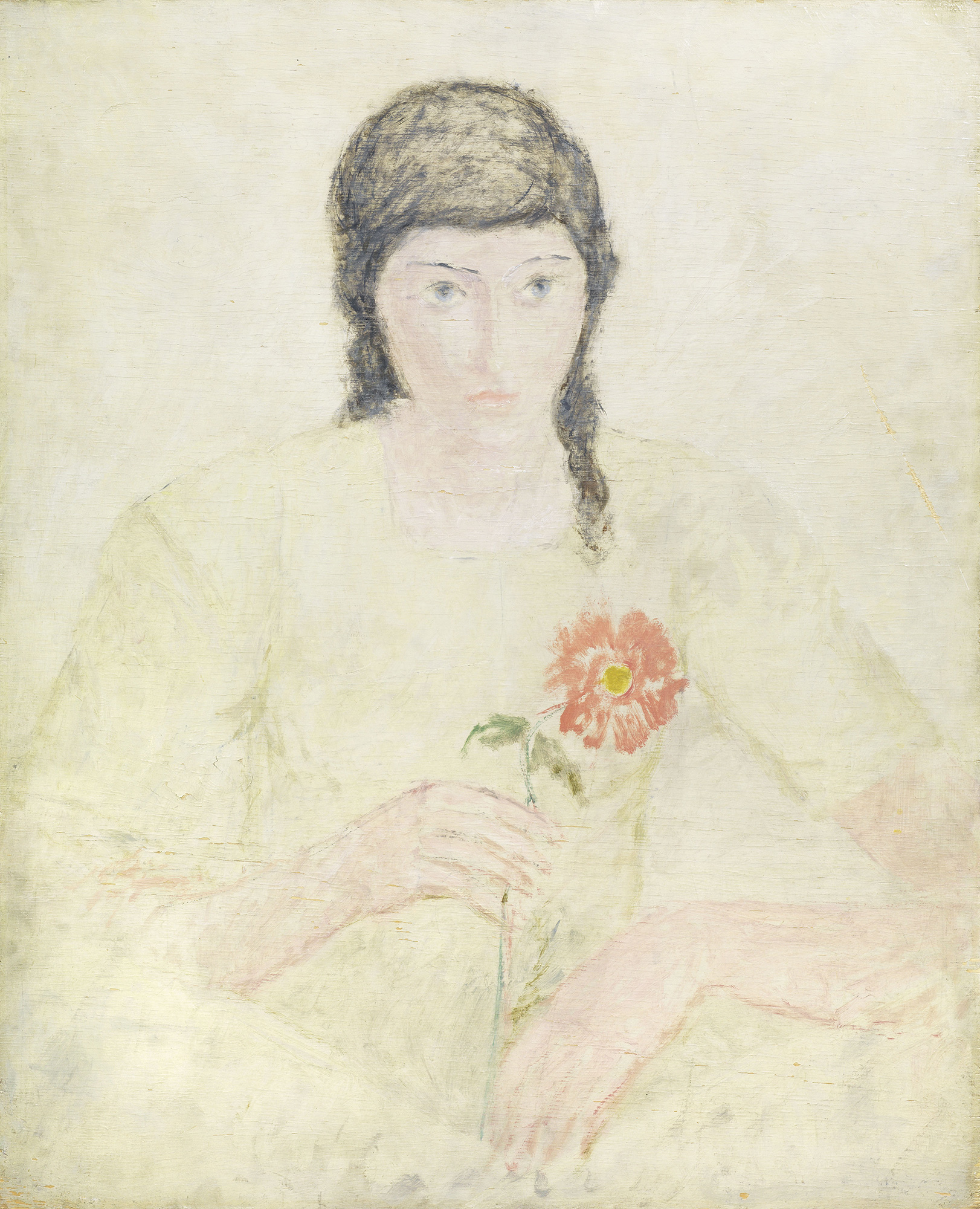 Titolo al verso: "Figura con fiore": etichetta e due timbri Galleria Michaud, Firenze: dichiarazione di autenticità "Questo quadro è opera autentica / di mio zio Pio Semeghini / E. Semeghini"