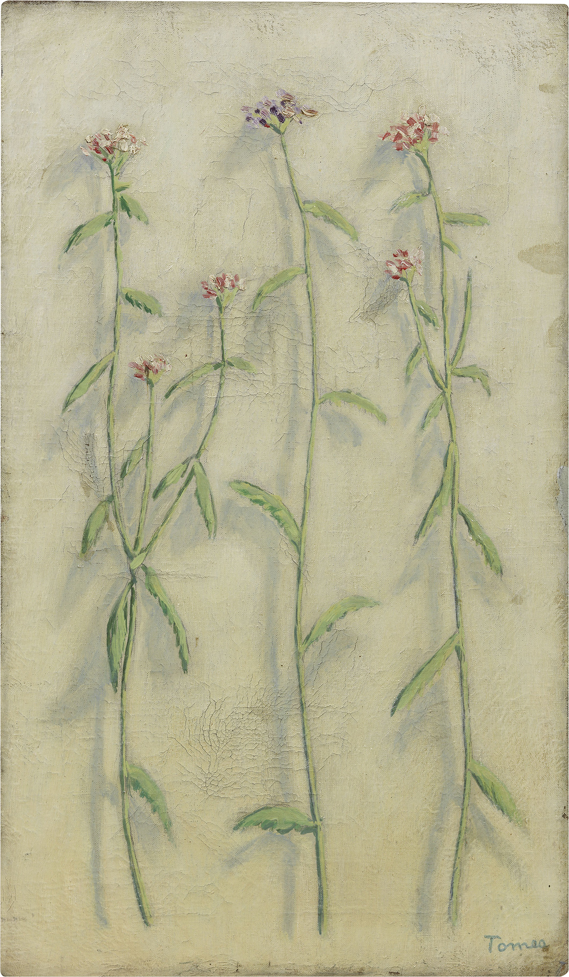 Firma in basso a destra: Tomea; firma, titolo e numero al verso sulla tela: F. Tomea / "Fiori" / N. 425 / 19[40]: etichetta e firma Galleria Schettini, Milano (opera datata 1932); sul telaio: etichetta Galleria Schettini, Milano