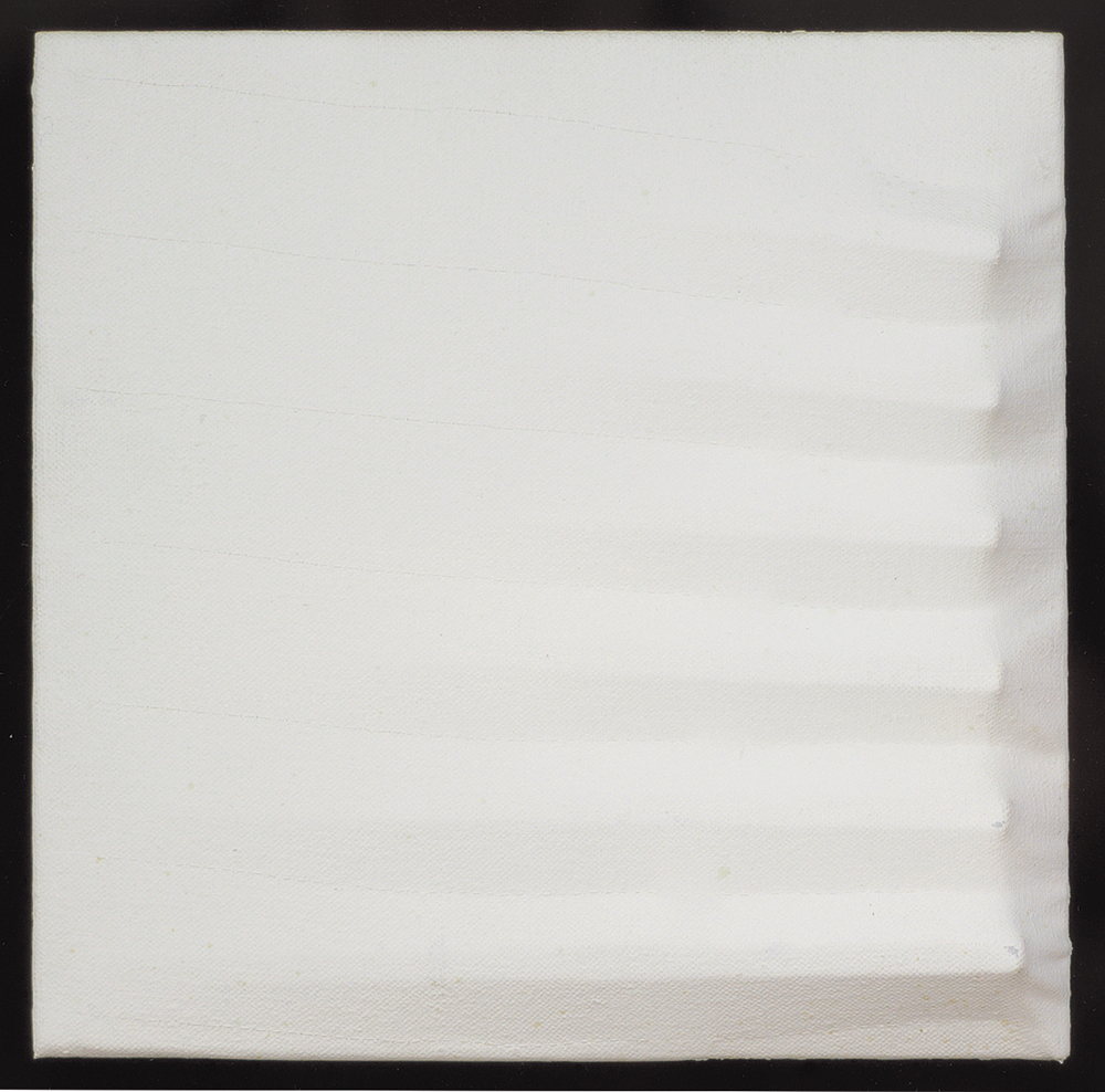 AGOSTINO BONALUMI Vimercate (Mi) 10/07/1935  Bianco 1980 tela estroflessa cm. 20x20, firma, anno, timbro ed etichetta dello Studio f.22 (Palazzolo sull'Oglio-BS) al retro, dichiarazione d'autenticità e archivio dell'artista su foto.