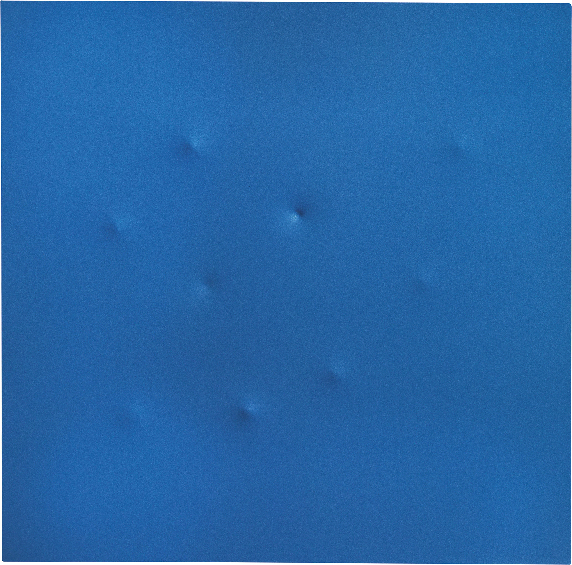 Titolo, firma e numero d'archivio al verso: N. 9 spari pistola cal. 45 / lastra in alluminio / Brescianini / Angelo / Arch. N. / BA01675102: etichetta Catalogo Ragionato / delle Opere / di Angelo Brescianini / © a cura di Antonio Falbo, con n. repertorio BA01675102 e timbro dell'artista: etichetta Lattuada Studio, Milano, con n. 3887 (opera datata 2015).