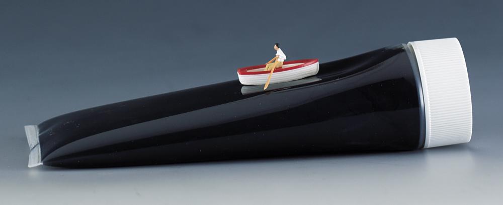 FRANCESCO DE MOLFETTA Milano 1979 Mare nero, 2005 tubetto e plastica cm. 20x5x8, firma, titolo e anno sotto la base, dichiarazione d'autenticità dell'artista su foto, pubblicata sul catalogo della mostra "L'opera al nero, dall'astrazione alla costruzione dell'immagine", Edizioni Artemisia Arte Contemporanea, tenutasi presso la Mole Vanvitelliana dal 22 luglio al 2 ottobre 2005, pagina 57.