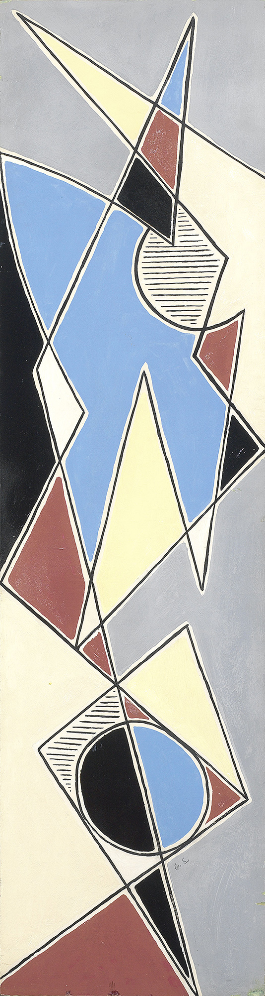 Sigla in basso al centro: G. S. Al verso: dichiarazione di autenticità di Jeanne Severini. Certificato su foto di Romana Severini Brunori, Roma, 29/12/2008, con n. 06. L’opera è stata realizzata come pannello decorativo per un negozio di Cortona.