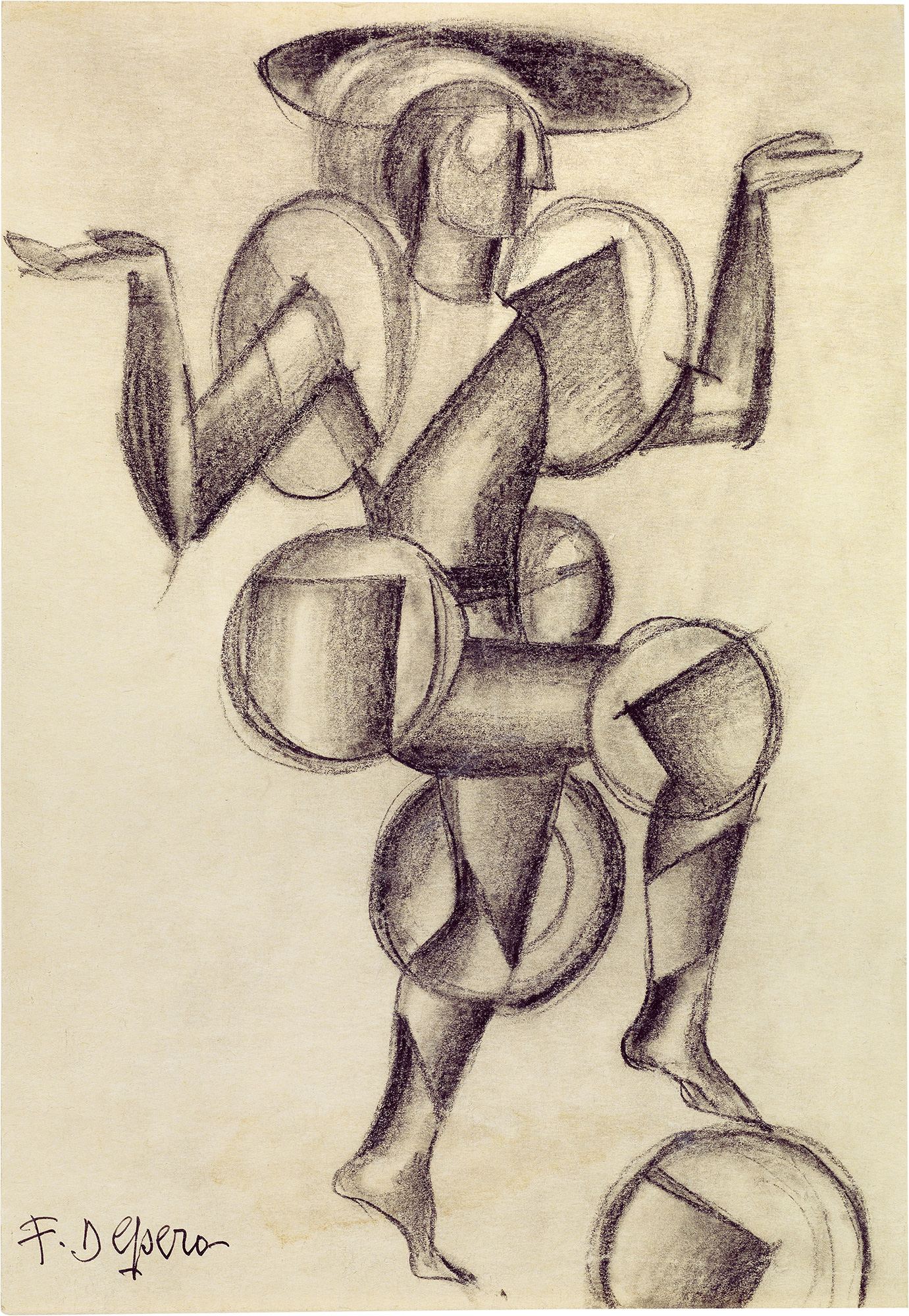 Firma in basso a sinistra: F. Depero. Certificato con foto Archivio Unico per il Catalogo delle Opere Futuriste di Fortunato Depero, Rovereto, 2 dicembre 2006, con n. FD-3562-DIS. Esposizioni Il corpo con le ali - Eadweard Muybridge - Dirk Baumanns e il disegno Futurista, a cura di Giancarlo Carpi, Roma, Futurism & Co Art Gallery, 8 febbraio - 30 aprile 2018, cat. p. 135, illustrato a colori; Depero Halley, a cura di Giancarlo Carpi e Graziano Menolascina,Roma, Futurism & Co Art Gallery, 24 gennaio - 9 maggio 2019, cat. p. 67, illustrato a colori; Futurism senza tema, a cura di Giancarlo Carpi, Roma, Futurism & Co Art Gallery, 15 maggio - 15 settembre 2019, illustrato a colori.