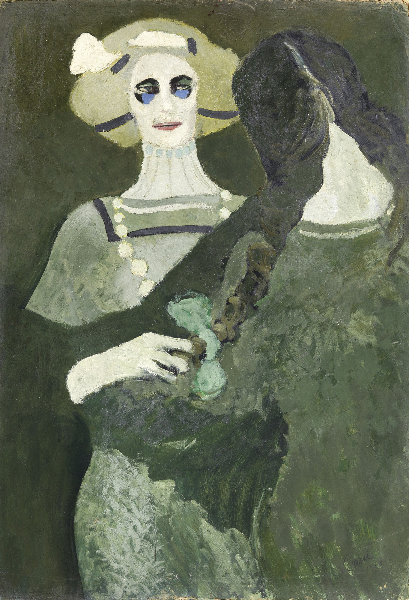 Firma e data in basso a destra: Viani / 1908. Al verso, su una faesite di supporto: etichetta Soprintendenza alla Galleria Nazionale d'Arte Moderna / Mostra di Pittura Italiana Contemporanea in Spagna / marzo-maggio 1955 (con titolo Ragazze): etichetta Città di Viareggio / Regione Toscana / Patrocinio Presidente Repubblica / Mostra Monografica / di / Lorenzo Viani / I Centenario della nascita / Novembre 1882-1982 / Palazzo Paolina: etichetta Comune di Bologna / Galleria d'Arte Moderna / Mostra antologica di / Lorenzo Viani / Museo Civico / Dicembre 1973 - Gennaio 1974: due etichette Comune di Verona / Galleria d'Arte Moderna e Contemporanea / Palazzo Forti / Mostra Da Van Gogh a Schiele / l'Europa espressionista 1880-1918 / dal 7 luglio 89 al 10 ottobre 89; sulla cornice: etichetta Mostra d'Arte Italiana Contemporanea / a cura dell'I.C.E. (con titolo Ragazze): cartiglio Mostra / Prima dell'Avanguardia. Storia Collezione privata, Firenze; Collezione privata Esposizioni Mostra di Pittura Italiana Contemporanea in Spagna, a cura della Galleria Nazionale d'Arte Moderna di Roma, marzo - maggio 1955; 100 Opere di Lorenzo Viani, Prato, Galleria Farsetti, maggio 1967, cat. tav. V, illustrato a colori; Lorenzo Viani, Viareggio, Galleria La Nuova Navicella, 21 giugno - 5 luglio 1970, cat. tav. V, illustrato; Mostra Antologica di Lorenzo Viani, Bologna, Galleria d'Arte Moderna, 22 dicembre 1973 - 27 gennaio 1974, cat. n. 5, illustrato a colori; Lorenzo Viani, Parigi / la guerra, a cura di Piero Pacini, con una testimonianza di Renato Santini, Focette, Galleria Farsetti, 7 agosto - 12 settembre 1982, cat. pp. 52, 53, n. III, illustrato a colori; Lorenzo Viani - Primo centenario della nascita, Viareggio, Palazzo Paolina, 20 novembre 1982 - 20 gennaio 1983, cat. n. 13, illustrato; Lorenzo Viani, Milano, Palazzo Reale - Sala delle Cariatidi, febbraio - aprile 1987; Da Van Gogh a Schiele. L'Europa espressionista 1880-1918, Verona, Palazzo Forti, 7 luglio - 10 ottobre 1989, cat. pp. 138, 264, illustrato a colori. Bibliografia Ida Cardellini Signorini, Lorenzo Viani, CP&S, Firenze, 1978, n. 40.