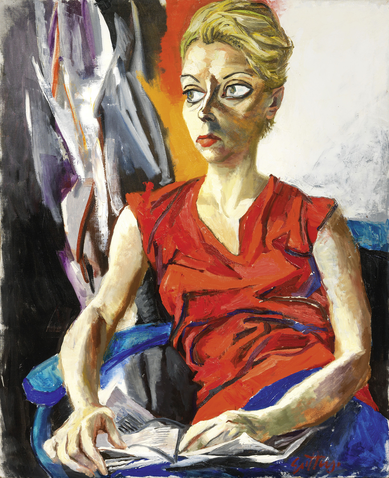 Firma in basso a destra: Guttuso; firma, data e titolo al verso sulla tela: Guttuso / V. ag. '60 / "Ritratto di Genni". Storia Collezione Mario De Ponti, Milano; Collezione privata, Milano; Collezione privata Esposizioni XXXIV Biennale Nazionale d'Arte Città di Milano, Palazzo della Permanente, 22 maggio - 31 ottobre 1965, cat. p. XXXIX, illustrato; Renato Guttuso, Gemälde, Aquerelle, Zeichungen aus den Jeahren 1940 bis 1966, Berlino, Nationalgalerie, 18 febbraio - 2 aprile 1967, poi Lipsia, Museum der Bildenden Künste, maggio 1967, cat. tav. 15, illustrato; Guttuso, Premio Raffaele De Grada per il paesaggio, Città di San Gimignano, 1970, illustrato; Morlotti, Guttuso, Burri: il luogo costante, Milano, Galleria d'Arte Cocorocchia, 6 maggio - 6 giugno 1972, cat. p. 40, illustrato. Bibliografia Settimo Giorno, a.XVI, n. 6 (746), Milano, 5 febbraio, 1963, p. 49 (particolare); BolaffiArte n. 14, anno II, Torino, novembre 1971, p. 57; Enrico Crispolti, Catalogo ragionato generale dei dipinti di Renato Guttuso, vol. 2, Giorgio Mondadori, Milano, 1984, p. 196, n. 60/84.