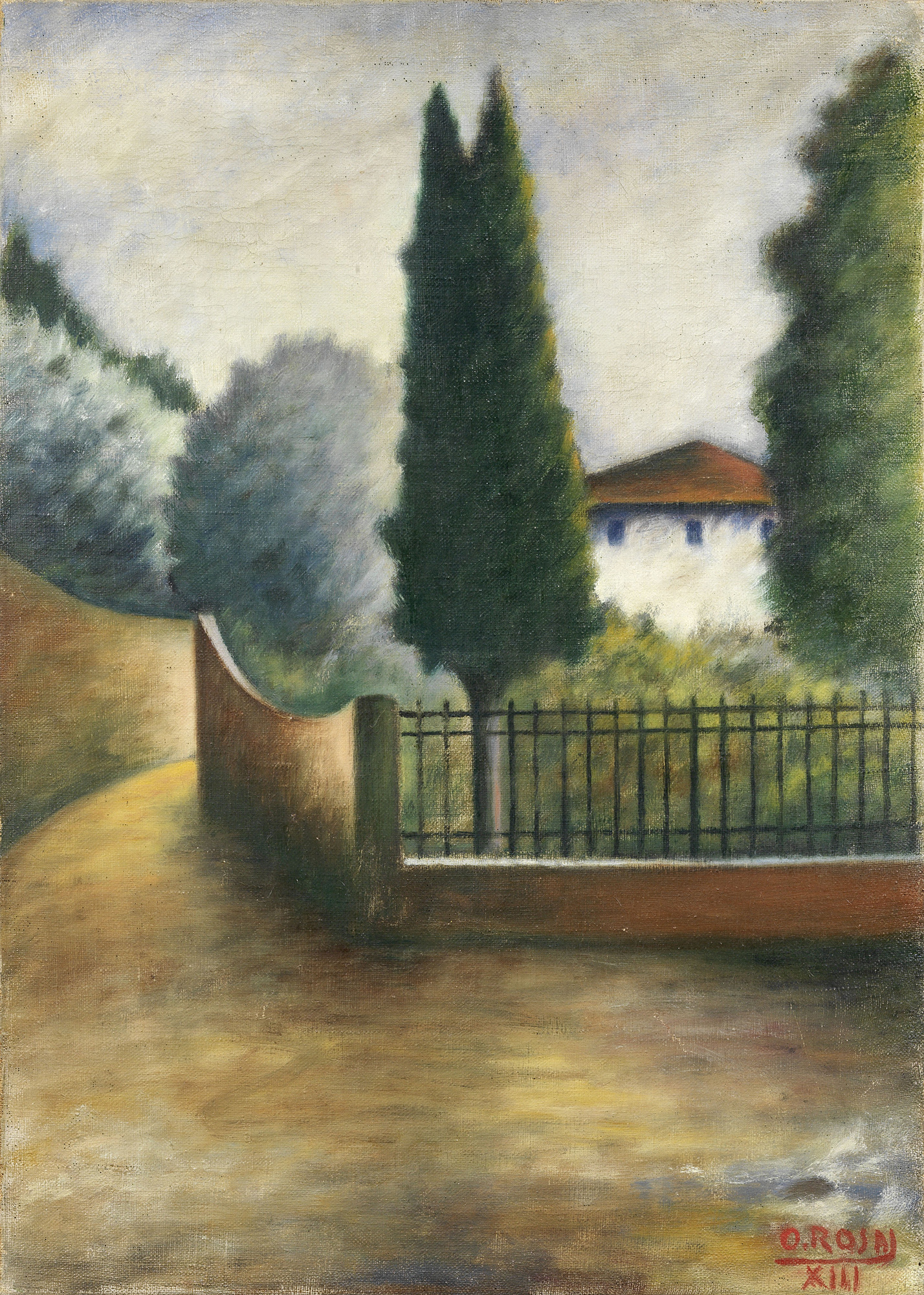 Firma e data in basso a destra: O. Rosai / XIII. Al verso sulla tela: etichetta con n. 6337 e timbro Galleria Annunciata / Milano. Storia Galleria Annunciata, Milano; Collezione privata, Milano; Collezione privata Certificato su foto di Luigi Cavallo, Milano, 29 marzo 2010. Esposizioni Arcadia e Apocalisse. Paesaggi italiani in 150 anni di arte, fotografia, video e installazione, a cura di Daniela Fonti e Filippo Bacci di Capaci, Pontedera, PALP Palazzo Pretorio, 8 dicembre 2019 - 26 aprile 2020, cat. p. 152, illustrato a colori. Bibliografia Giovanni Faccenda, Catalogo Generale Ragionato delle Opere di Ottone Rosai. Primo Volume, Editoriale Giorgio Mondadori, Milano, 2018, p. 384, n. 118.