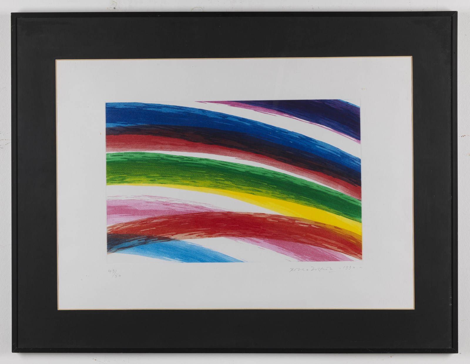 DORAZIO PIERO (1927 - 2005) Senza titolo. Acquaforte. Cm 70,00 x 50,00. 43/50. Tiratura e firma in basso a matita. Dimensione lastra: 31x49 cm. Provenienza: Studio F22, Palazzolo. Cornice presente