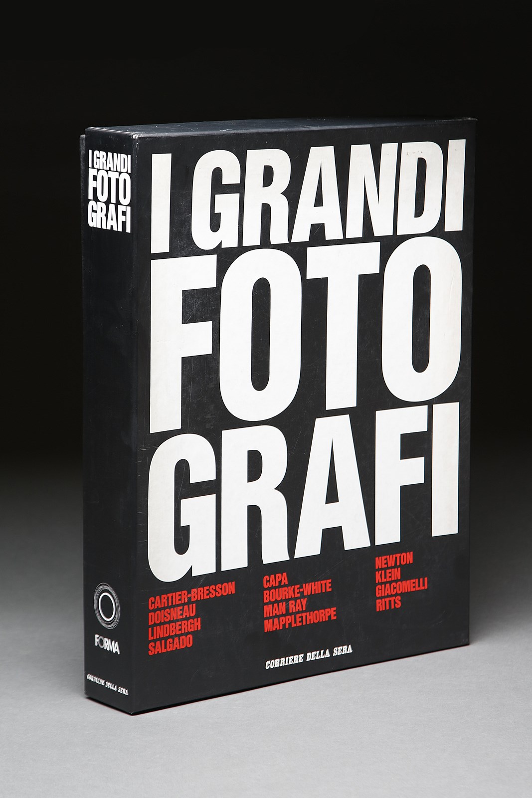 ARTISTI VARI I grandi fotografi. Fotografia. Cm 40,00 x 60,00. Portfolio completo in edizione limitata di 12 fotografie d'arte dal 1924 al 1990. Editore: Corriere della Sera, Milano 2006. Elenco delle stampe: Man Ray: Ingre's Violin, 1924; Henri Cartier-Bresson: Hyères, France, 1932; Horst P. Horst: Mainbocher Corset, Paris, 1939; Margaret Bourke-White: DC-4 Over Manhattan, 1939; Robert Capa: Near Troina. August, 1943; Robert Doisneau: Il bacio dell'Hotel de Ville, Paris, 1950; William Klein: Piazza di Spagna, Rome (Vogue), 1960; Mario Giacomelli: Young priests, 1961; Sebastiao Salgado: First Communion, Brazil, 1981; Helmut Newton: Big Nude III, Henrietta, Paris, 1983; Peter Lindbergh: Mathilde on Eiffel Tower, Paris, 1989; Herb Ritts: Versace, Veiled Dress, 1990. Presente confezione originale.