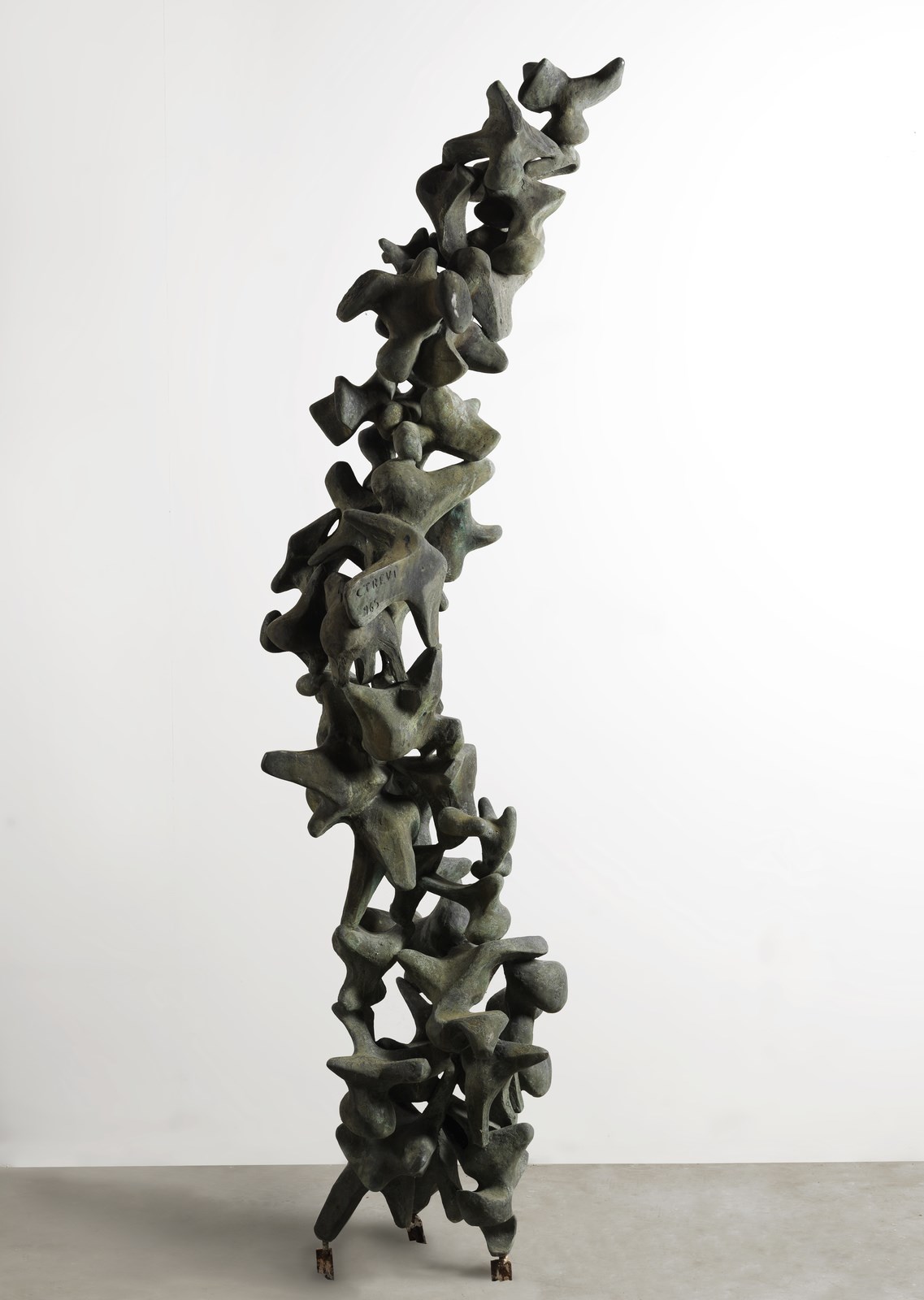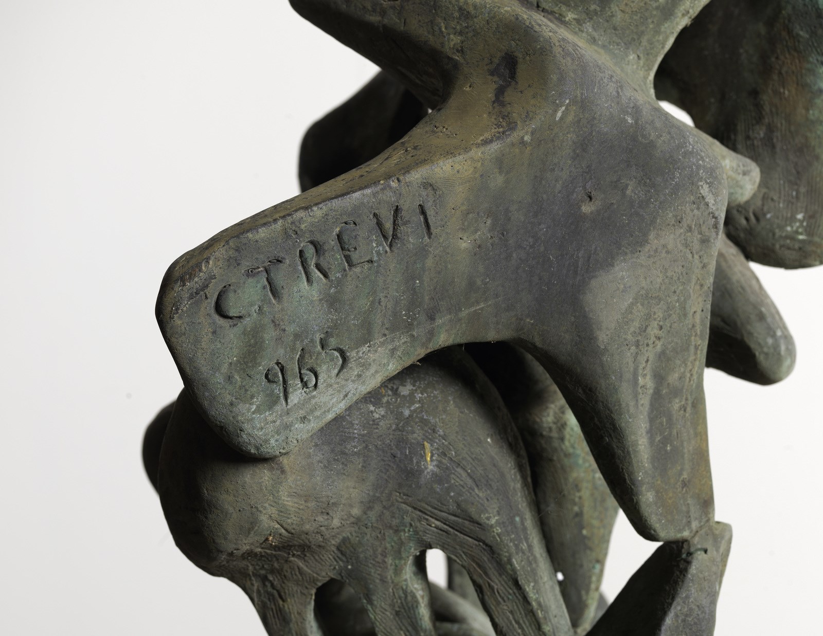 TREVI CLAUDIO (1928 - 1987) Volo di colombi. 1965. Bronzo e marmo. Cm 50,00 x 215,00. Firma e anno incise al centro.