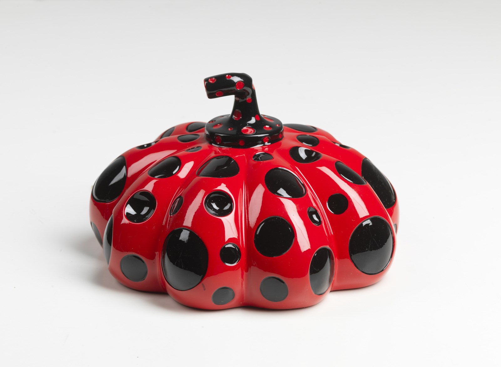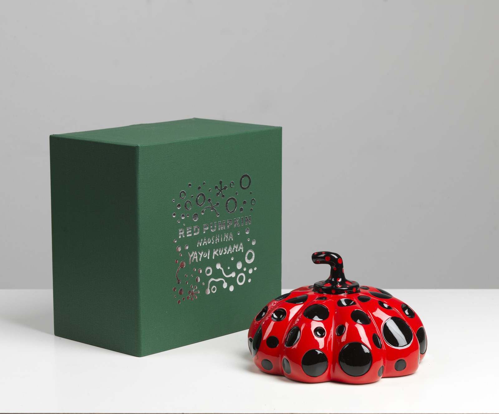 KUSAMA YAYOI (n. 1929) Red Pumpkin Naoshima. Resina dipinta. Cm 13,50 x 8,00 x 13,50. TimbroYayoi Kusama sotto la base. Presente confezione originale.