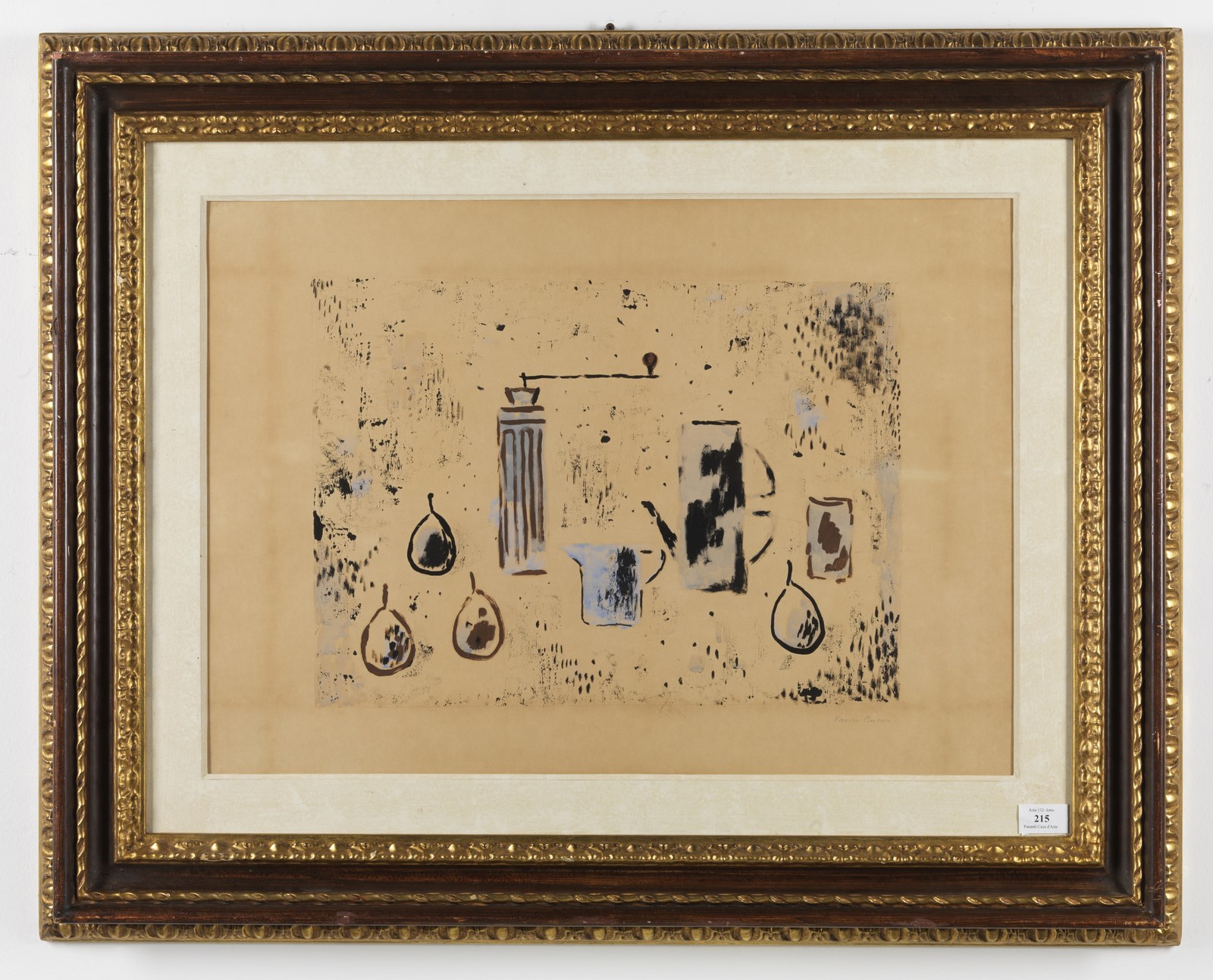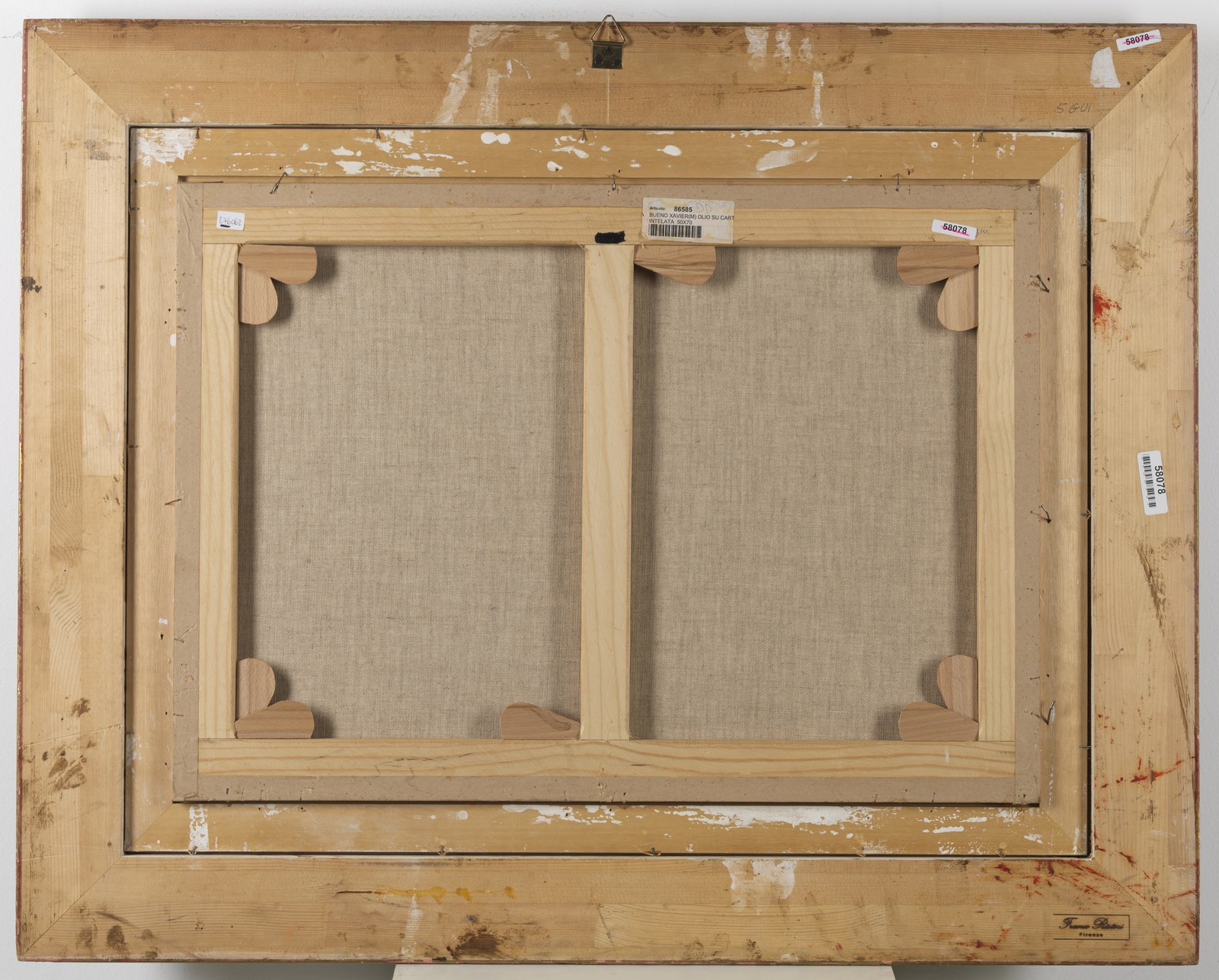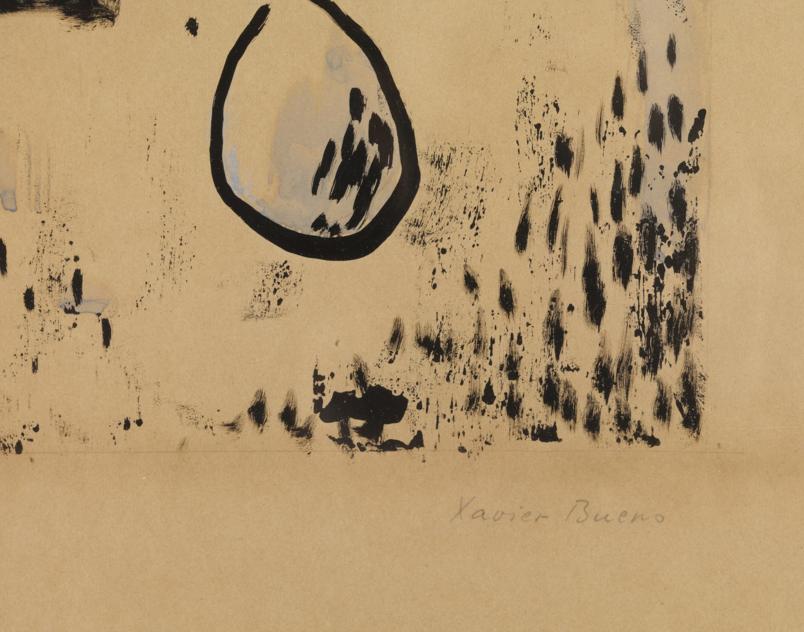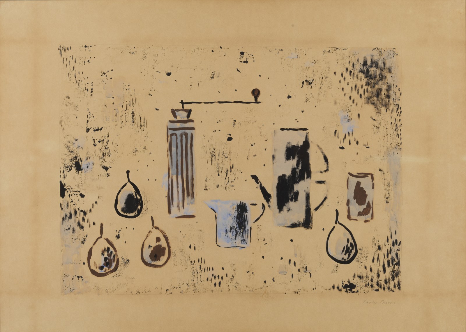 BUENO XAVIER (1915 - 1979) Natura morta. 1960. Tecnica mista su carta su tela. Cm 70,00 x 50,00. Firma in basso a destra. Opera archiviata presso l'Archivio Xavier Bueno - Bianco Giovanbattista come da documentazione fotografica allegata all'opera riportante il relativo numero d'inventario. Cornice presente