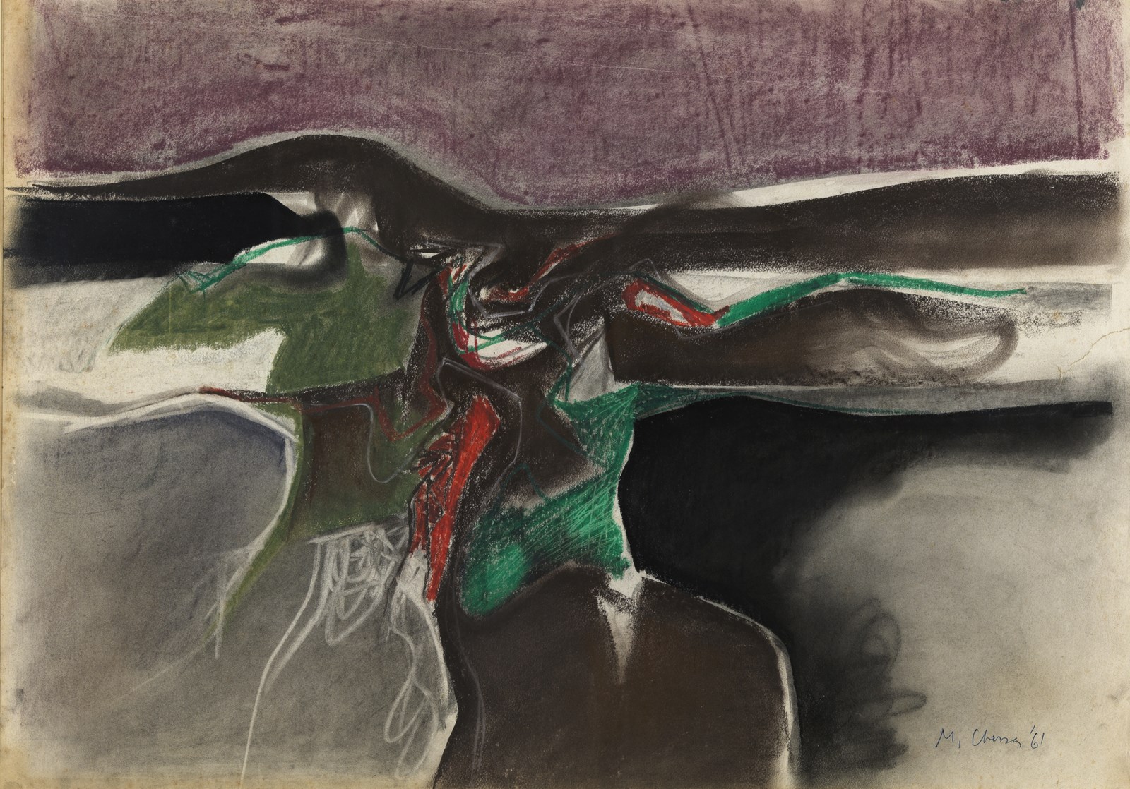 CHESSA MAURO (n. 1933) Senza titolo. Pastelli su carta. Cm 70,00 x 50,00. Firma e anno in basso a destra. Difetti. Cornice presente