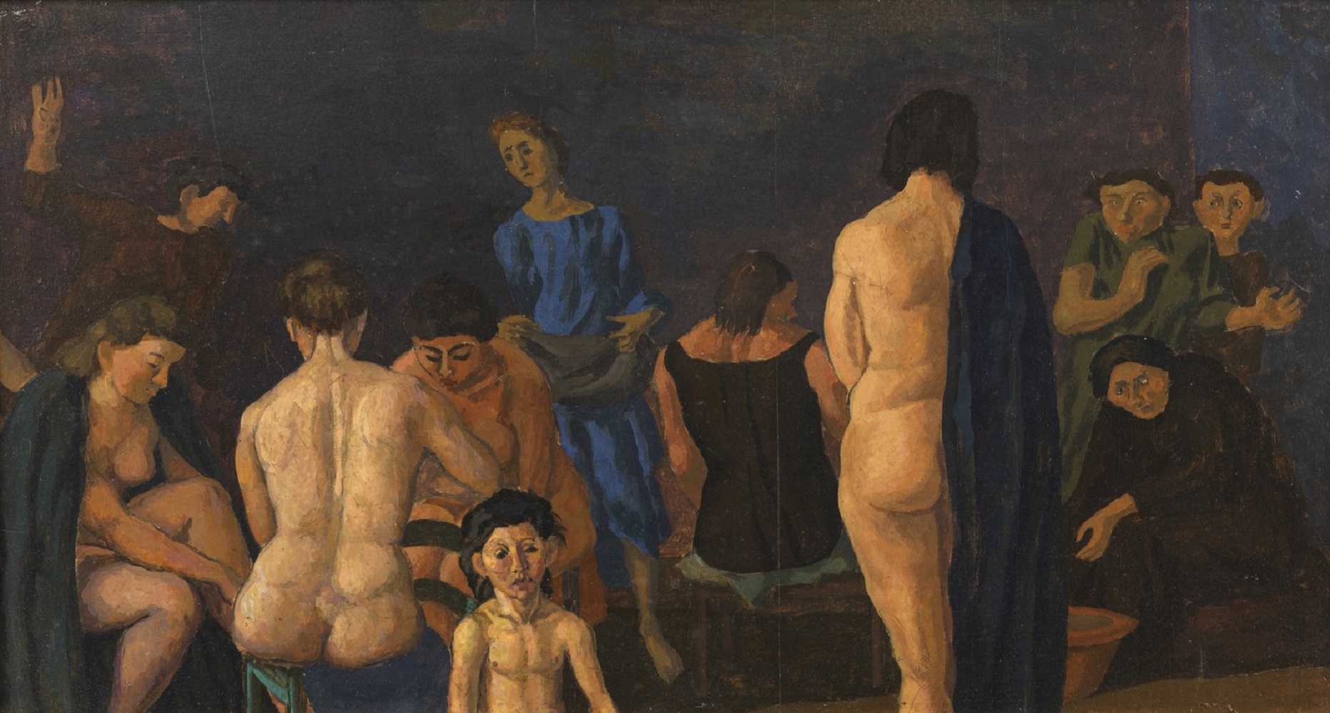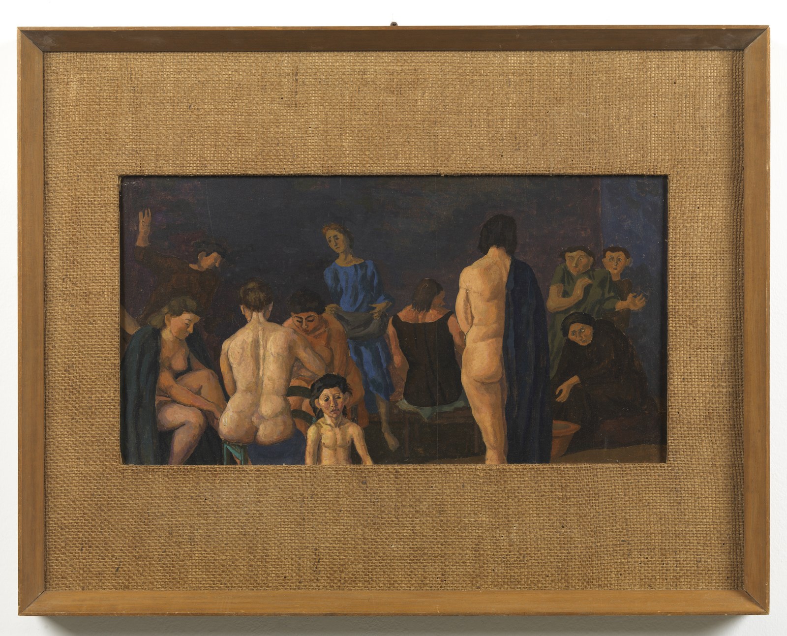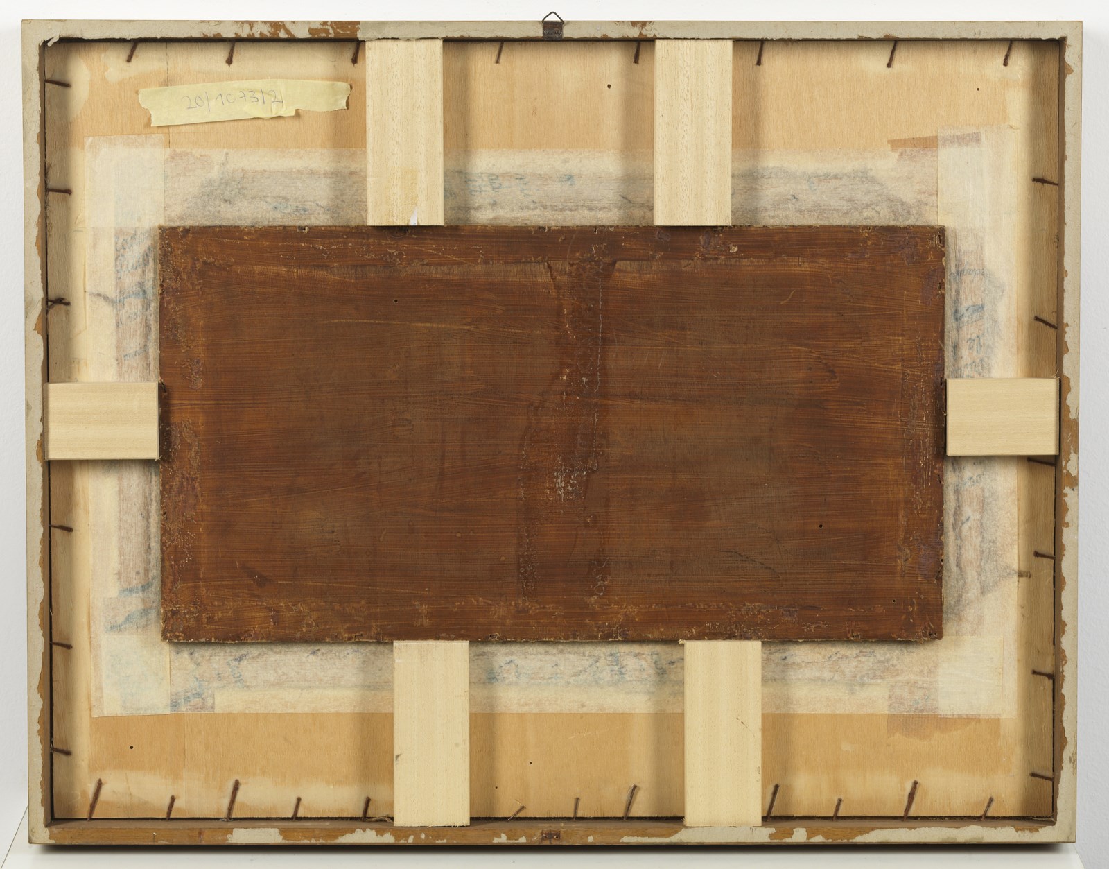 SCUOLA ROMANA Senza titolo. Olio su tavola. Cm 50,00 x 27,00. . Cornice presente