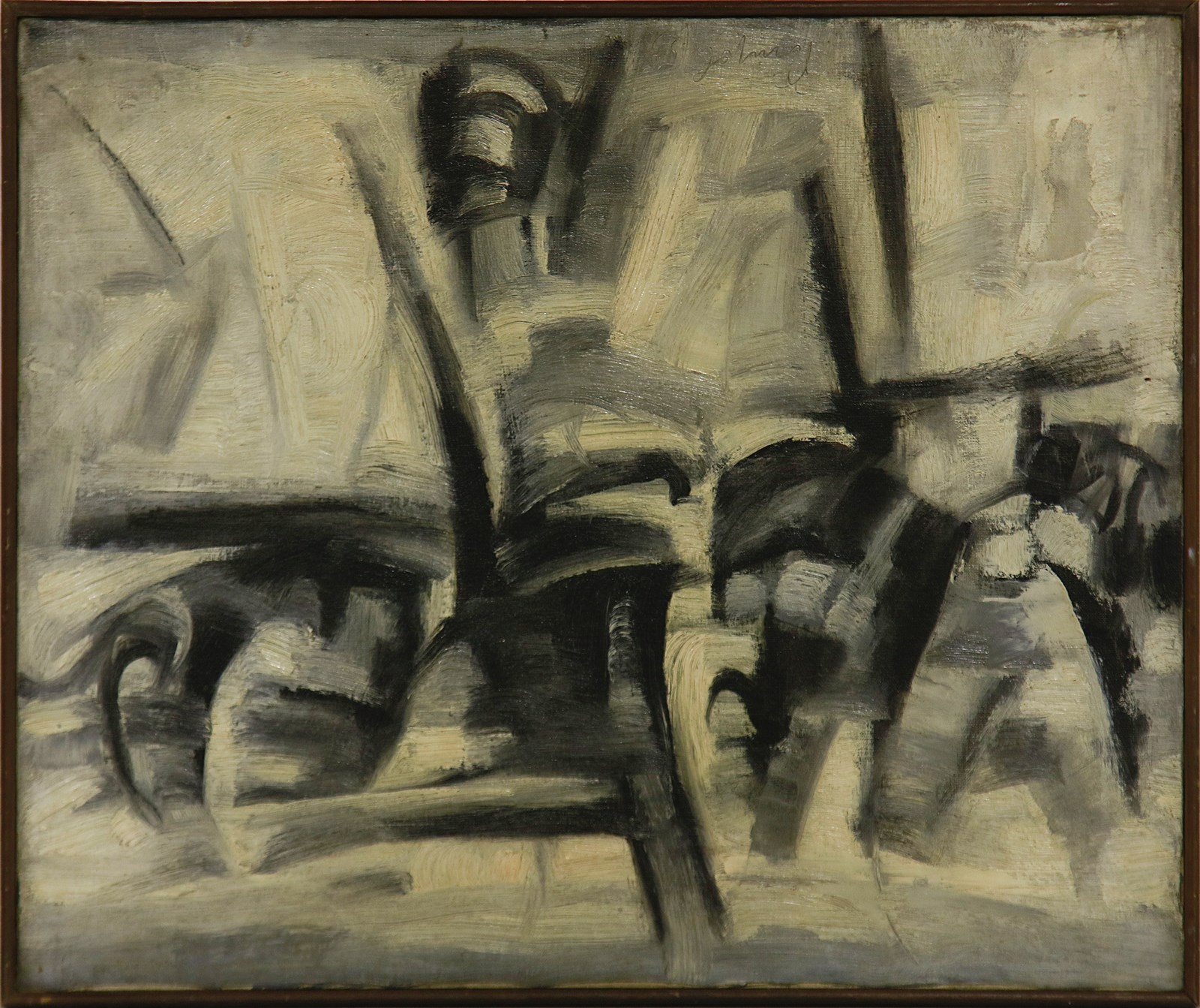 FORGIOLI ATTILIO (n. 1933) Senza titolo. 1959. Olio su tela . Cm 60,00 x 50,00. Firma e anno in basso al centro. Lievi difetti. Cornice presente