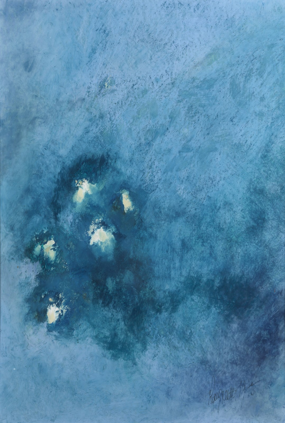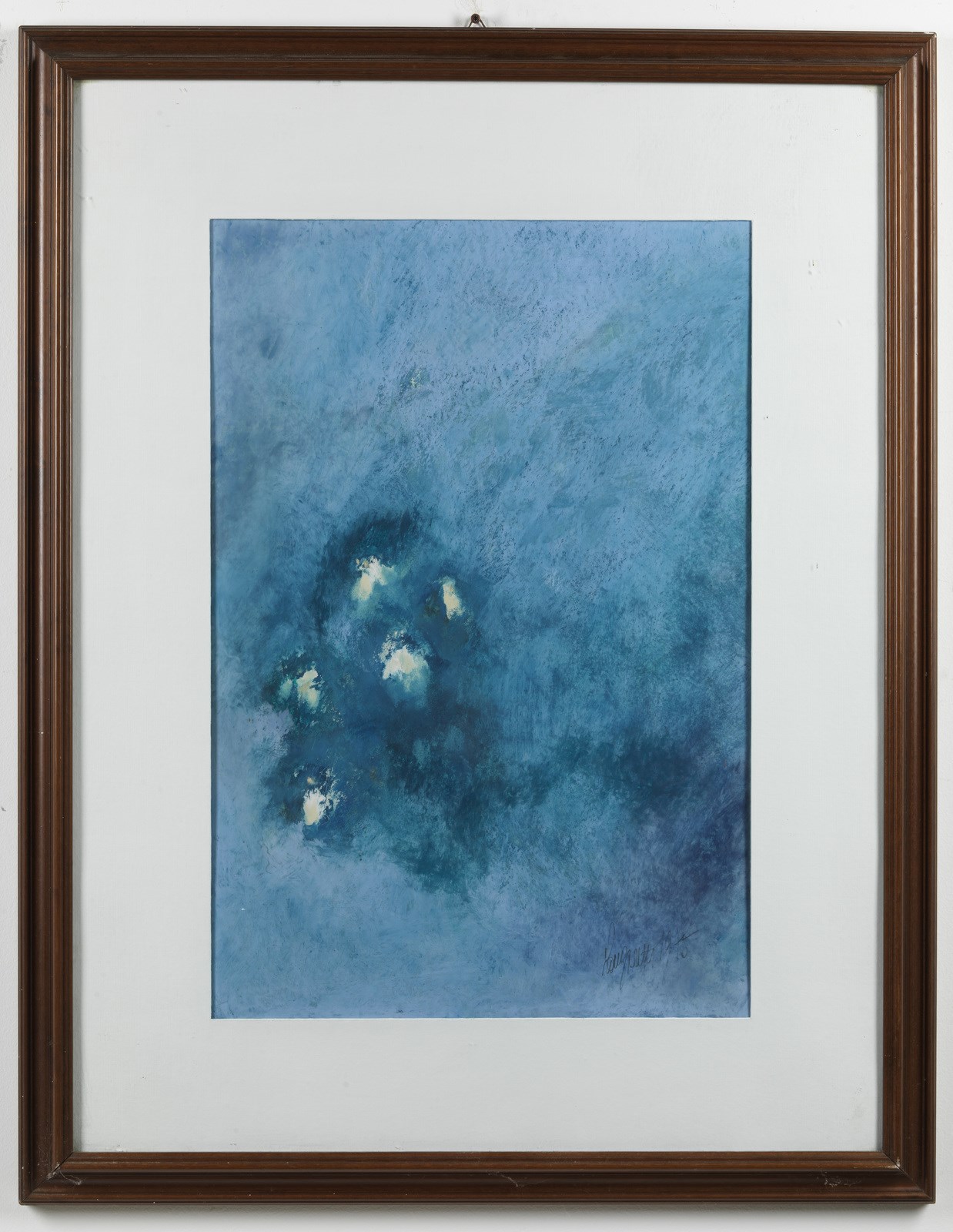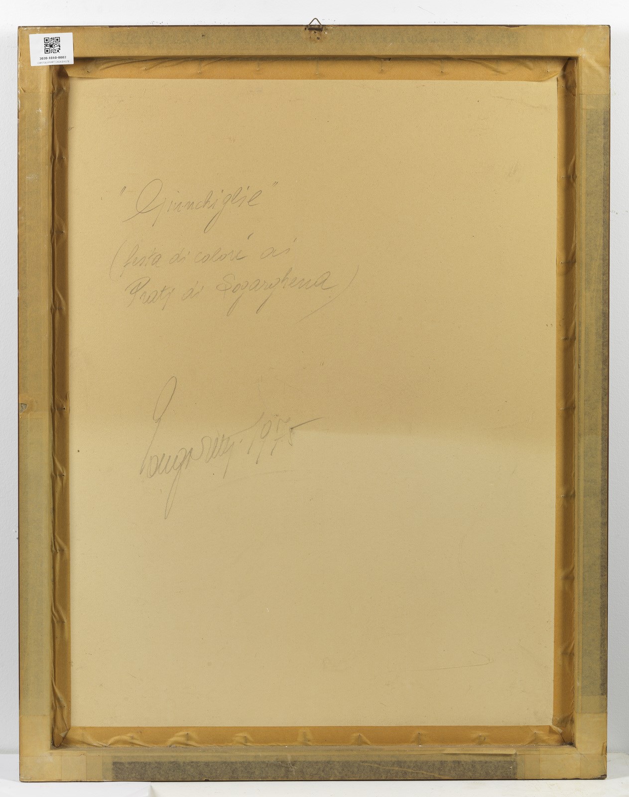 LONGARETTI CARLO ALBERTO Giunchiglie. 1975. Tecnica mista su carta. Cm 43,00 x 84,00. Firma e anno in basso a destra. Al retro titolo, firma e anno. Cornice presente