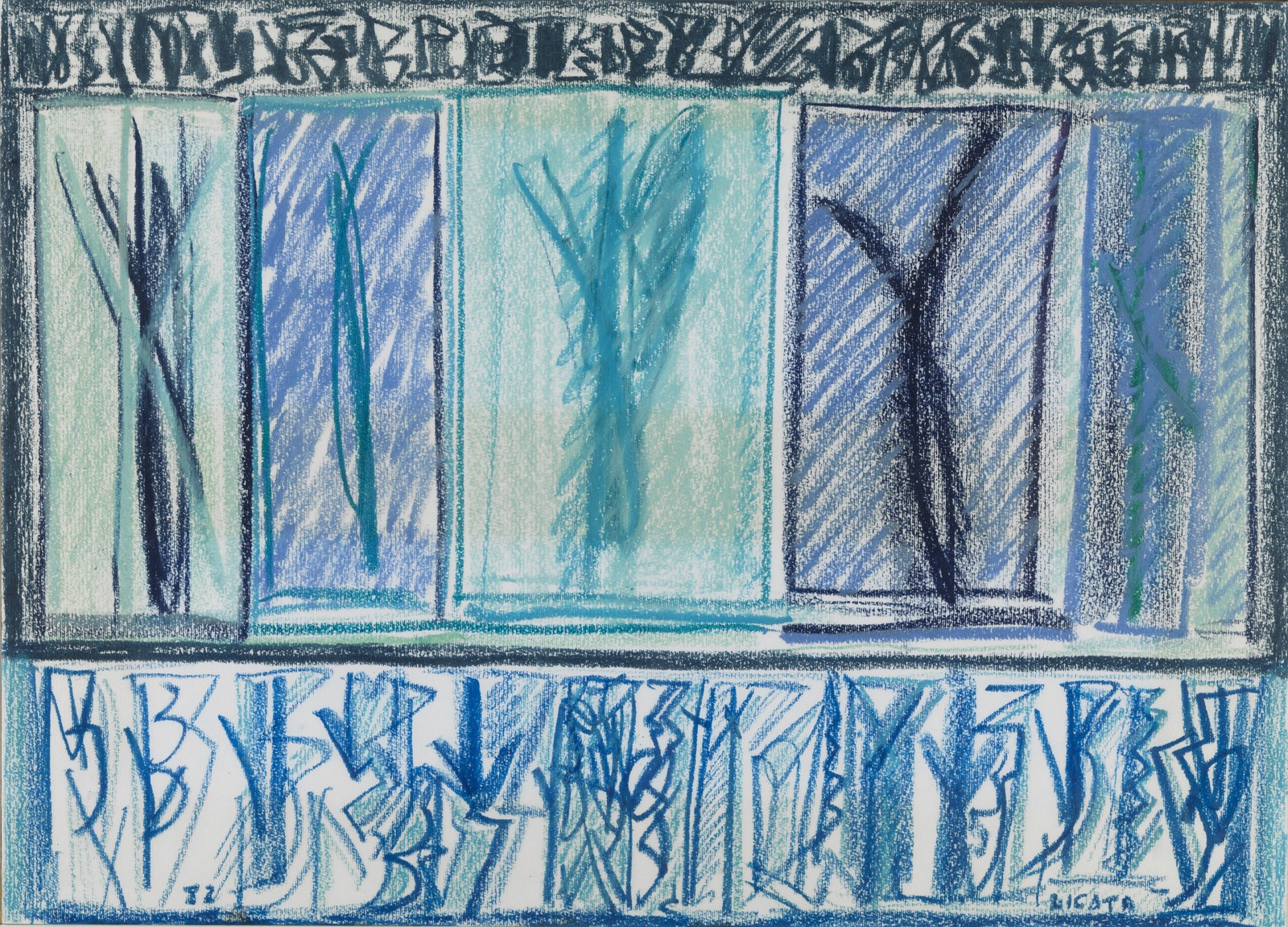 LICATA RICCARDO (1929 - 2014) Senza titolo. 1982. Pastello su carta. Cm 50,00 x 36,00. Anno in basso a sinistra e firma in basso a destra. Opera archiviata presso lo Studio Granzotto come da documentazione fotografica allegata all'opera riportante il relativo numero d'inventario. Cornice presente