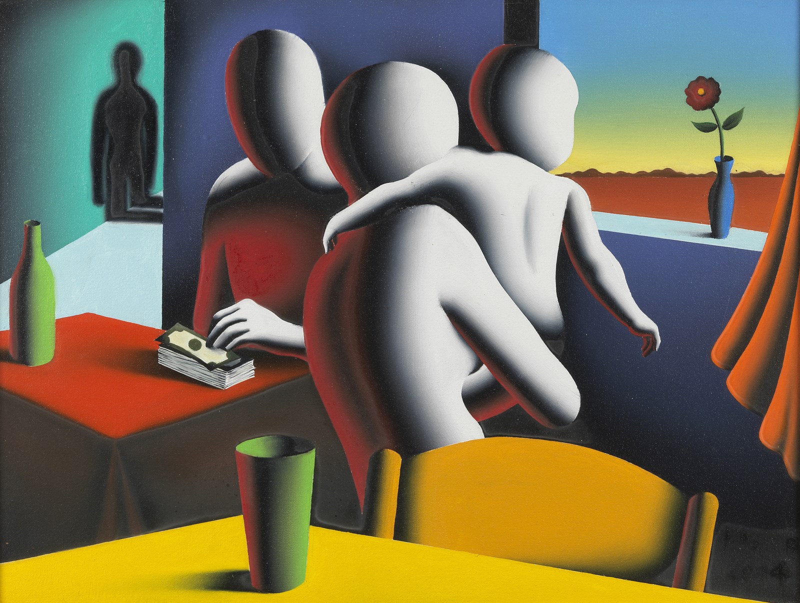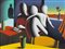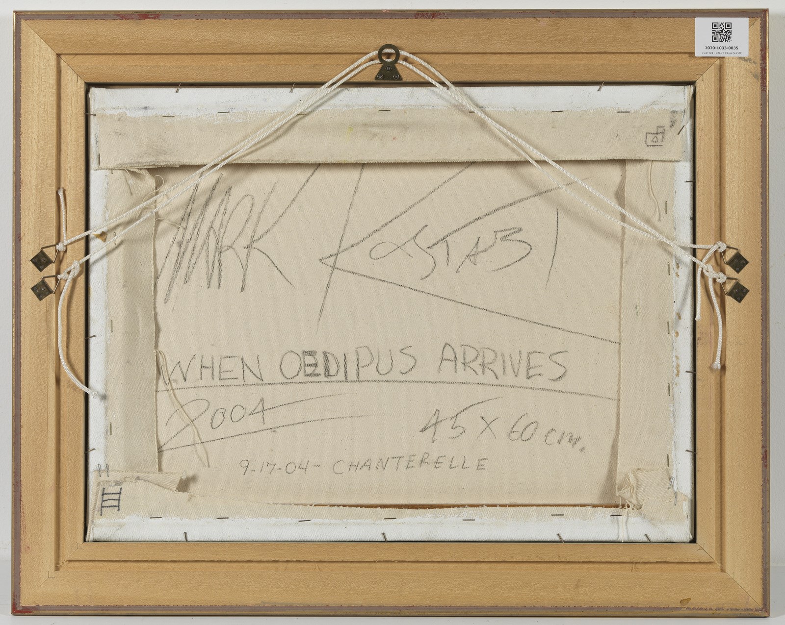 KOSTABI MARK (n. 1960) When oedipus arrives. 2004. Olio su tela . Cm 60,00 x 45,00. Firma e anno in basso a destra. Al retro titolo, firma e anno. Autentica dell'artista su fotografia. Cornice presente