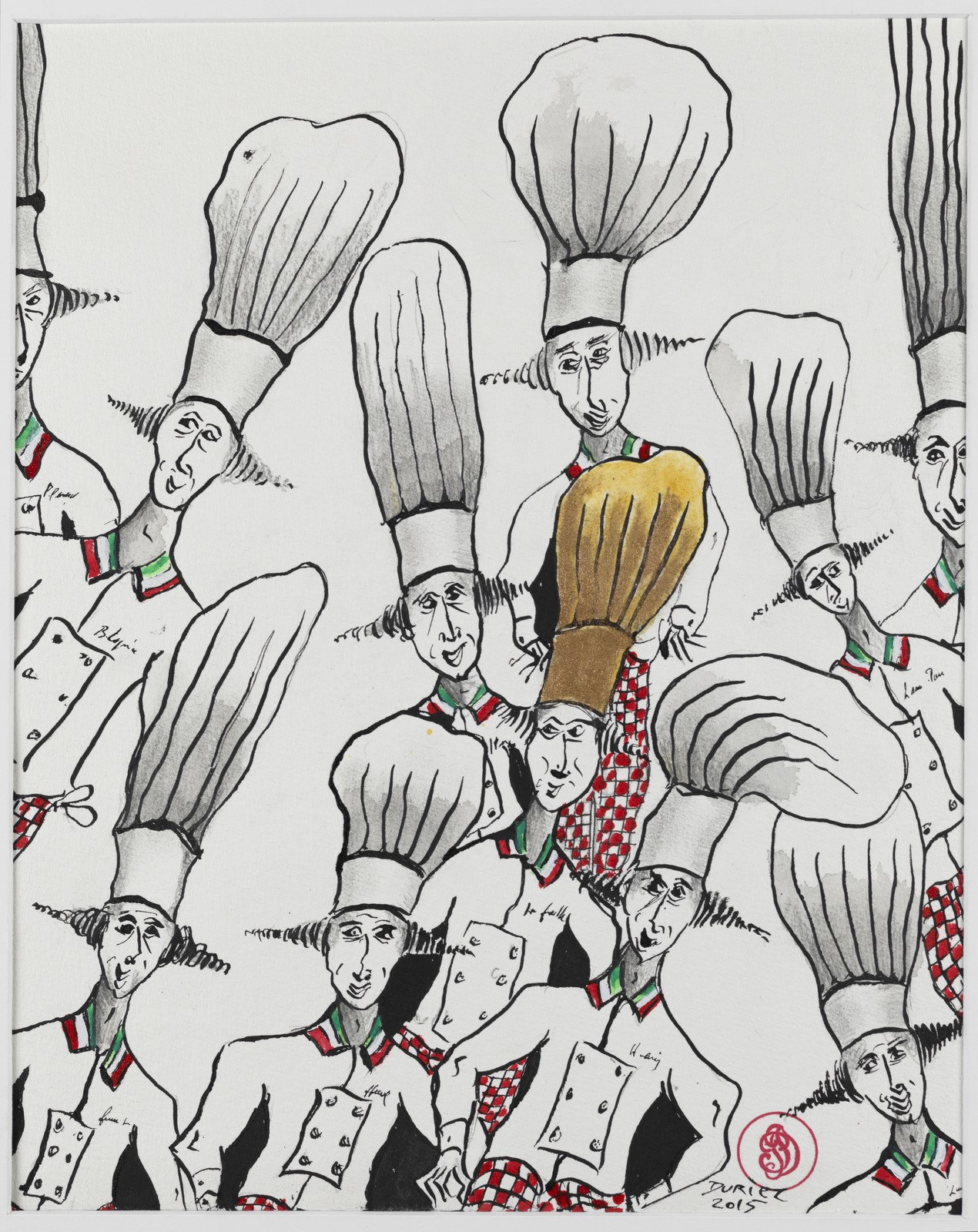 DURIEZ JEAN PIERRE (n. 1949) La Toque d'OR. 2015. Tecnica mista su carta. Cm 27,50 x 39,50. Firma e anno in basso a destra. Provenienza: Collezione Galleria Bowinkel. Catalogue Raisonné Dessins 2015/11.