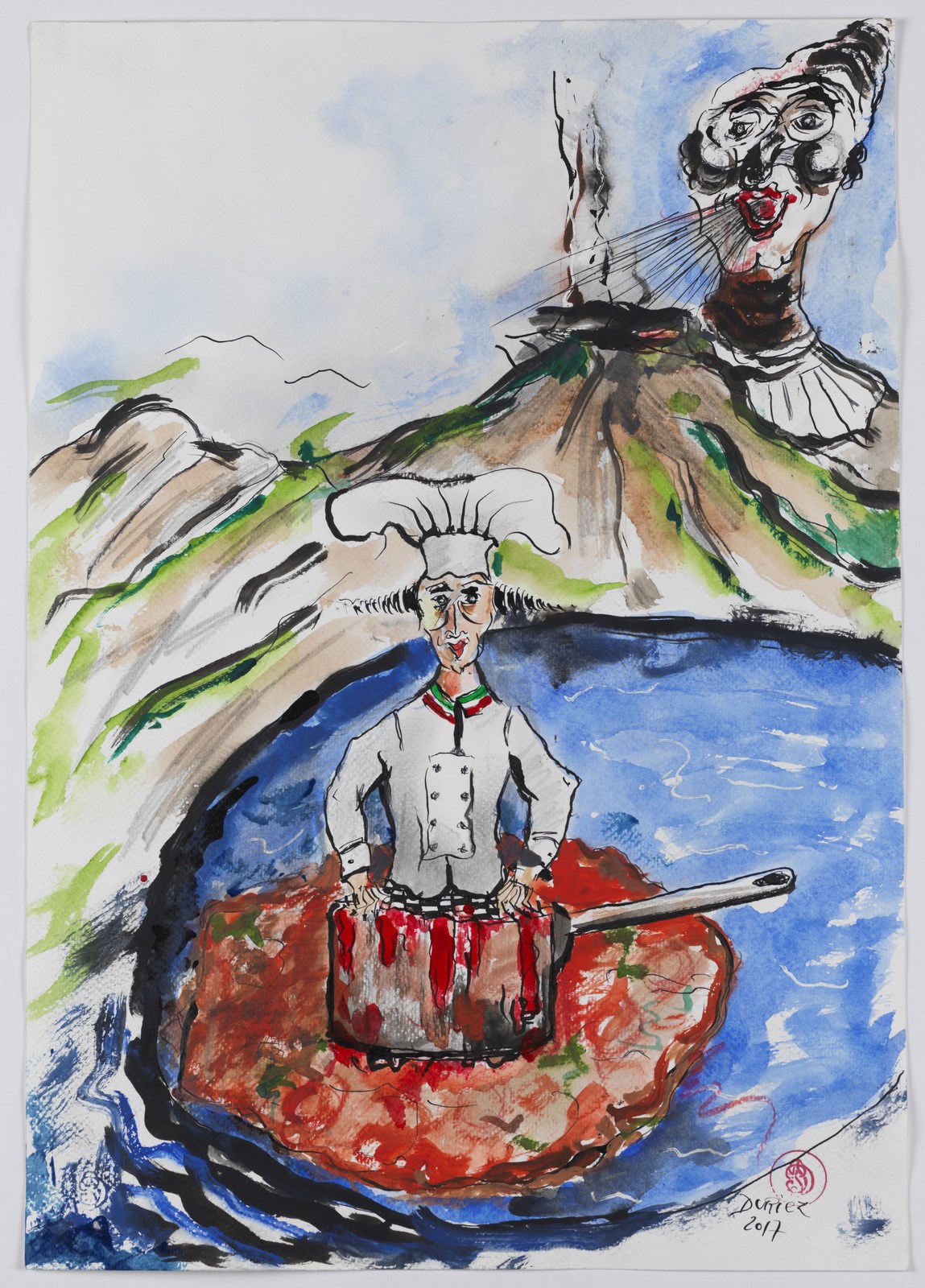 DURIEZ JEAN PIERRE (n. 1949) Chefs tricolores. 2014. Tecnica mista su carta. Cm 35,00 x 50,00. Firma e anno in basso a destra e al retro. Provenienza: Collezione Galleria Bowinkel. Catalogue Raisonné Dessins 2014/20.